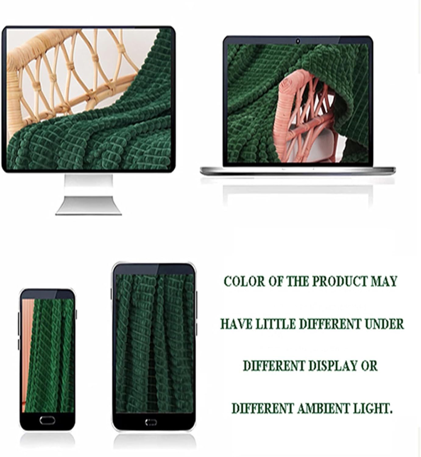 Green Throw Blanket 50"×60" Decorations Fleece Super Soft Plush Fuzzy Cozy Blanket with Square 3D Jacquard Grid Design Luxury Lightweight for Couch So