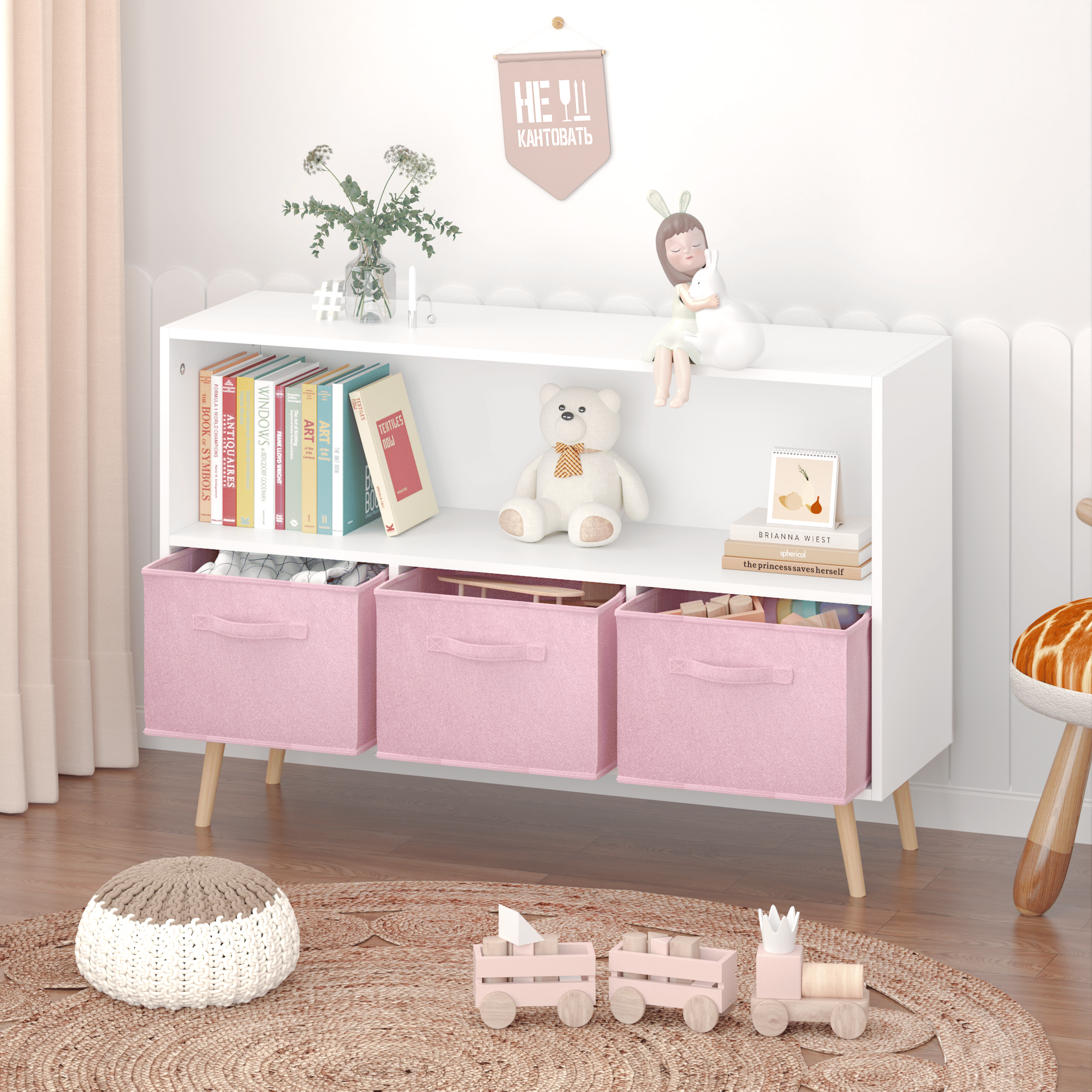 Kids bookcase with Collapsible Fabric Drawers, Children's Book Display, Toy Storage Cabinet Organizer