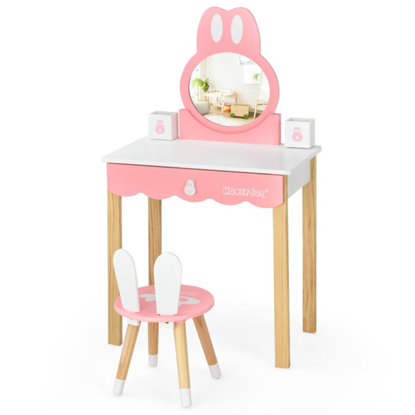 • Ample Storage Space: This spacious tabletop allows your kids to put their beauty accessories or daily items on it. In addition, the makeup table is equipped with a big drawer and 2 small boxes, offering large storage space for kids' cosmetics, headwear, jewelry, stationery, etc. And the cute rabbit knob makes it easy to open the drawer.
