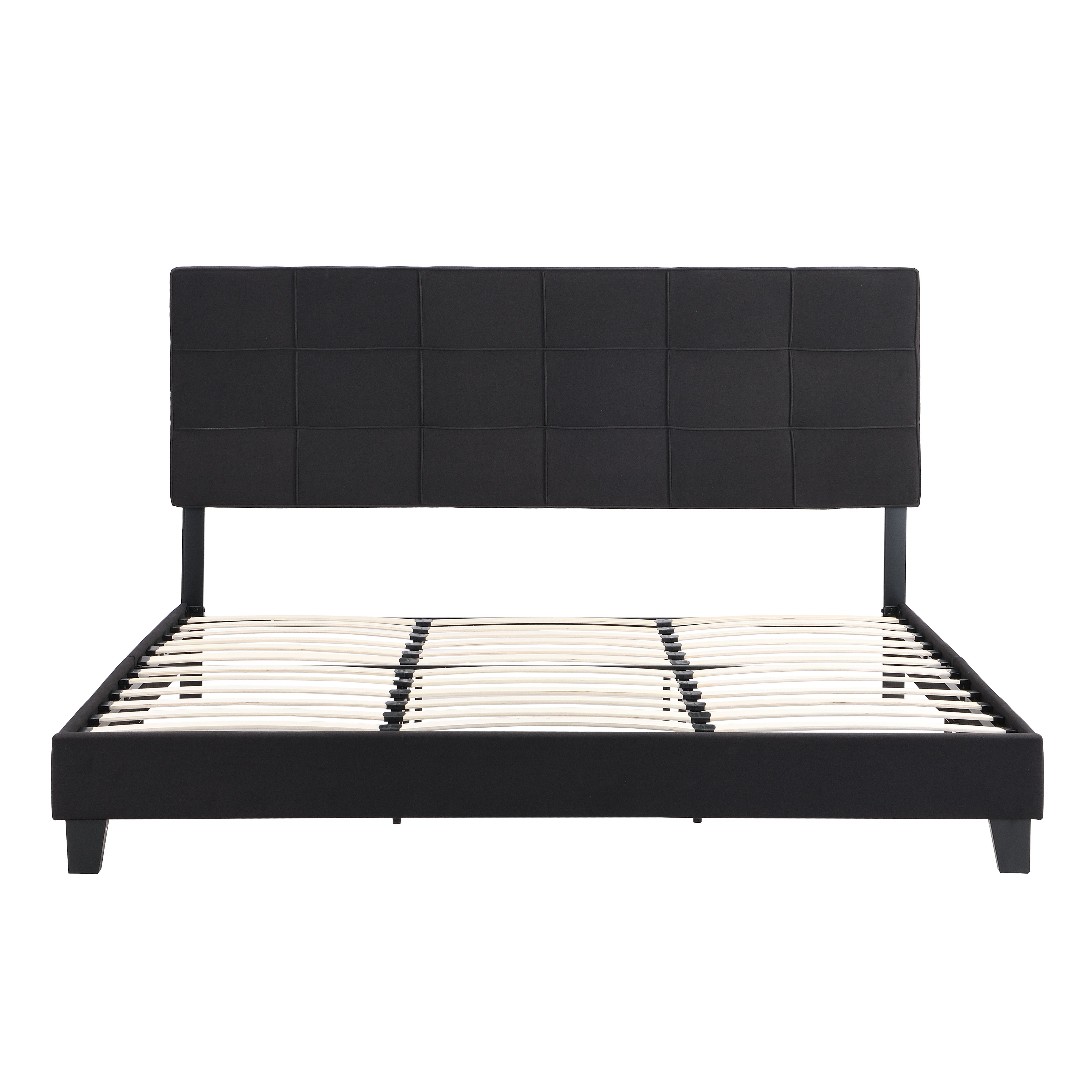 King Size Upholstered Platform Bed Frame with Linen Fabric Headboard, No Box Spring Needed, Wood Slat Support, Easy Assembly, BLACK