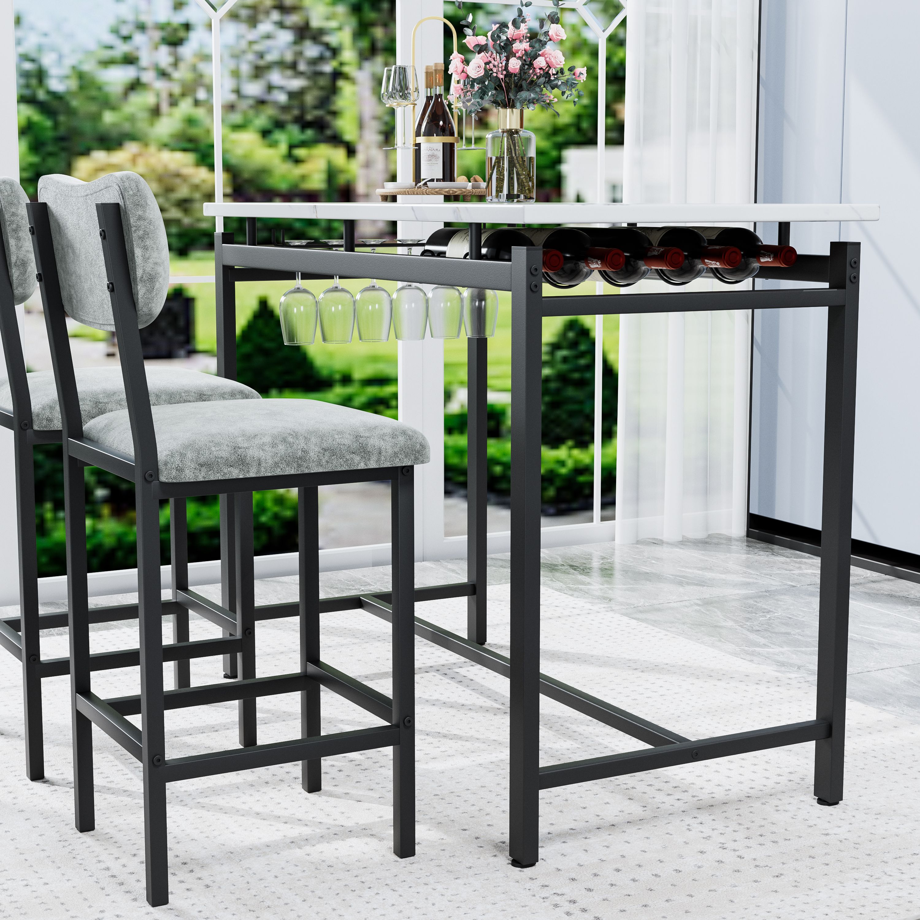 2.SPACE-SAVING COMPACT DESIGN: 2 high dining chairs can be hidden under the bar kitchen table to save space and create a tidy atmosphere. It is an excellent solution for small spaces, such as condos, kitchens, studios, pubs, or apartments.