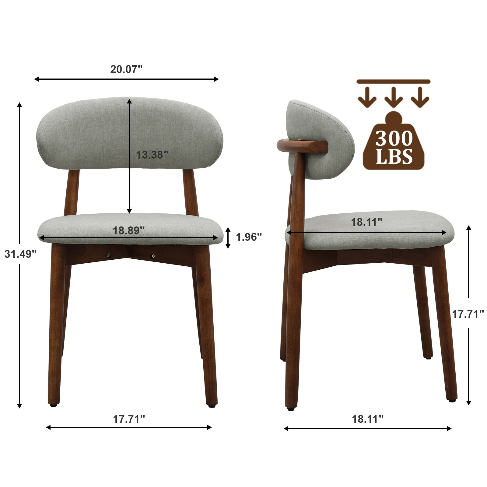 Laurel Green Flannelette Upholstered Dining Chair with Walnut Solid Wood Legs, Armless Chair Set of 4 for Kitchen, Restaurant, Living, Meeting Room