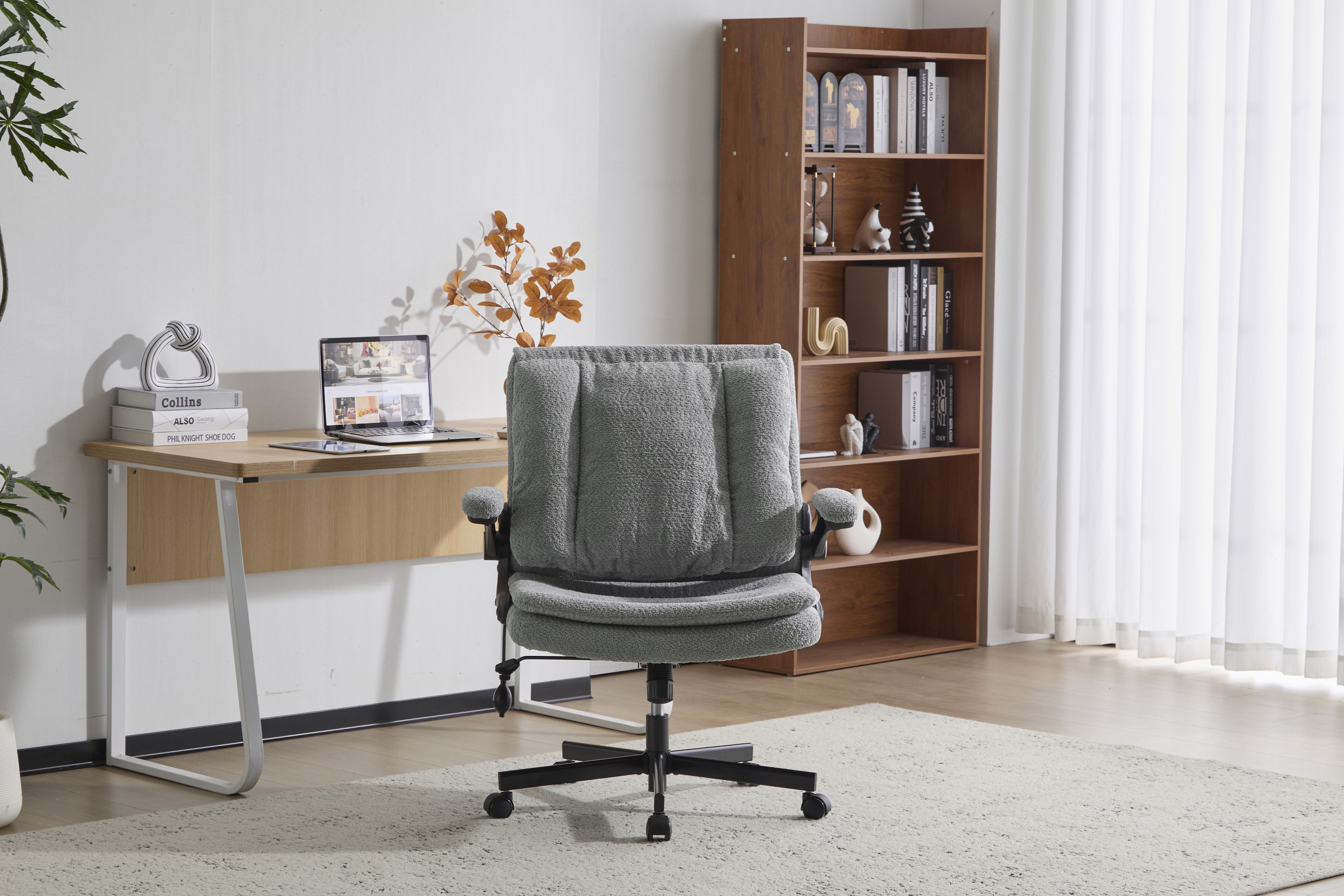 Home > Leather Criss Cross Chair with Flip-Up Armrests, Cross Legged Office Chair on Wheels
