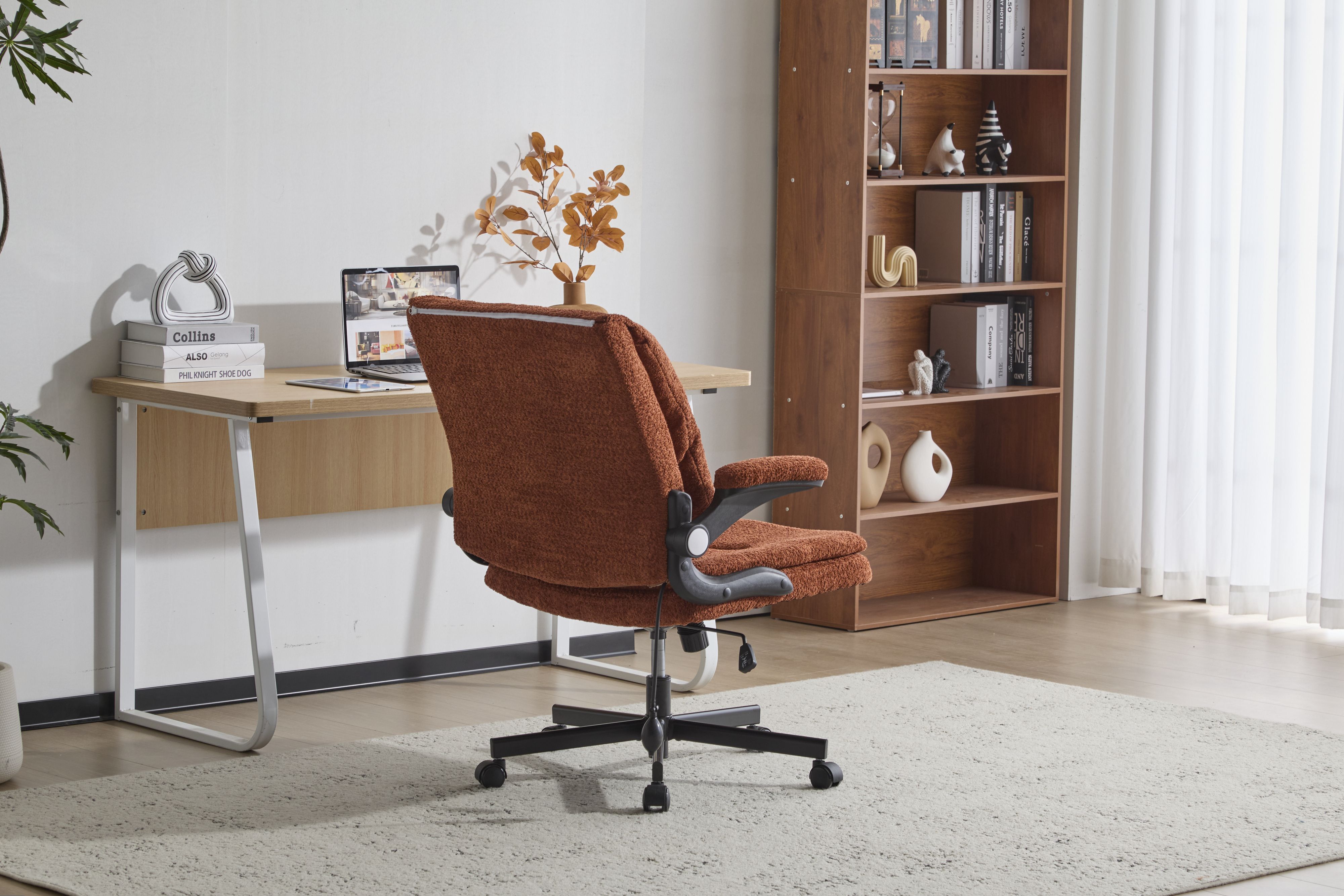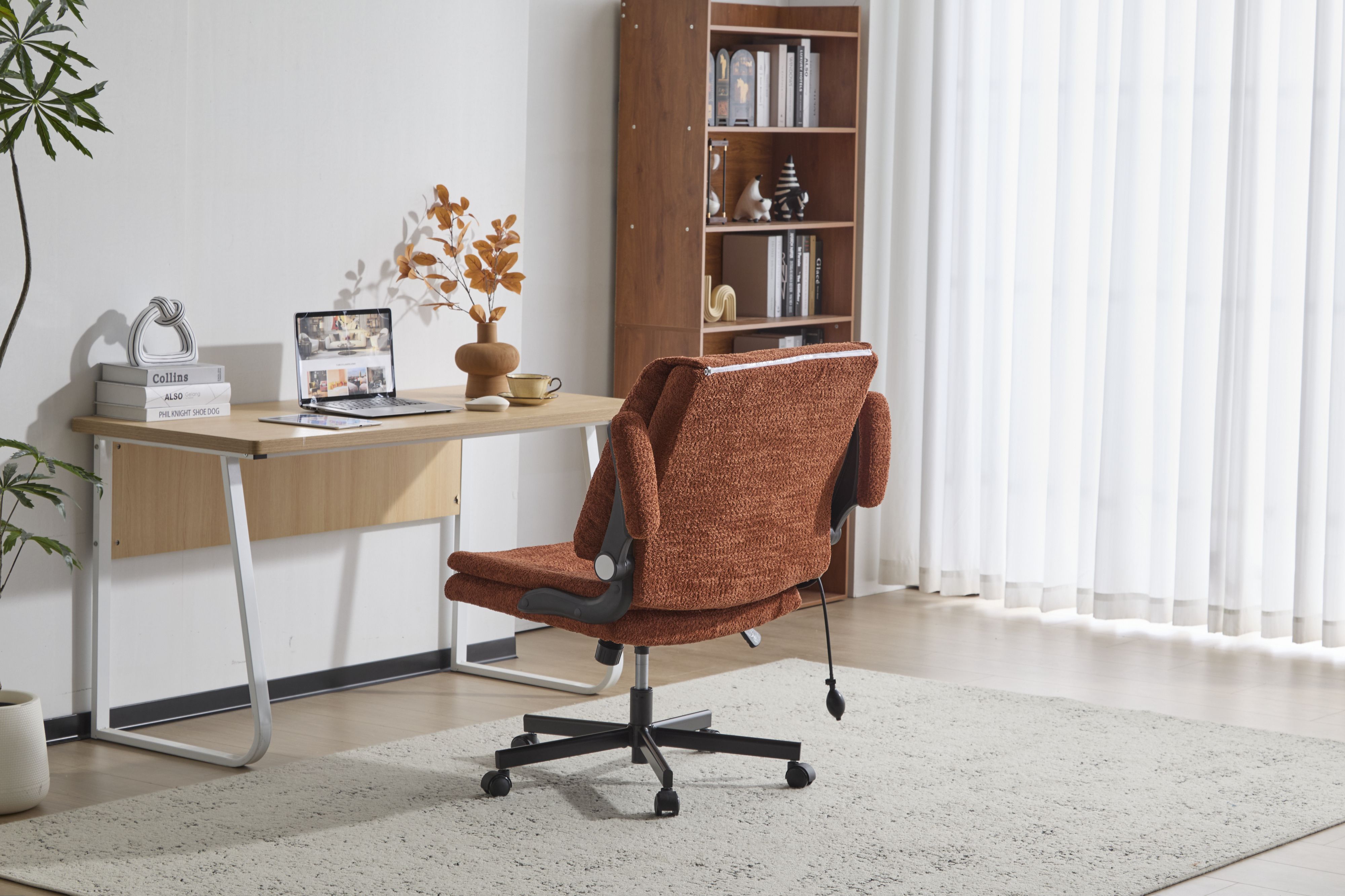 Home > Leather Criss Cross Chair with Flip-Up Armrests, Cross Legged Office Chair on Wheels