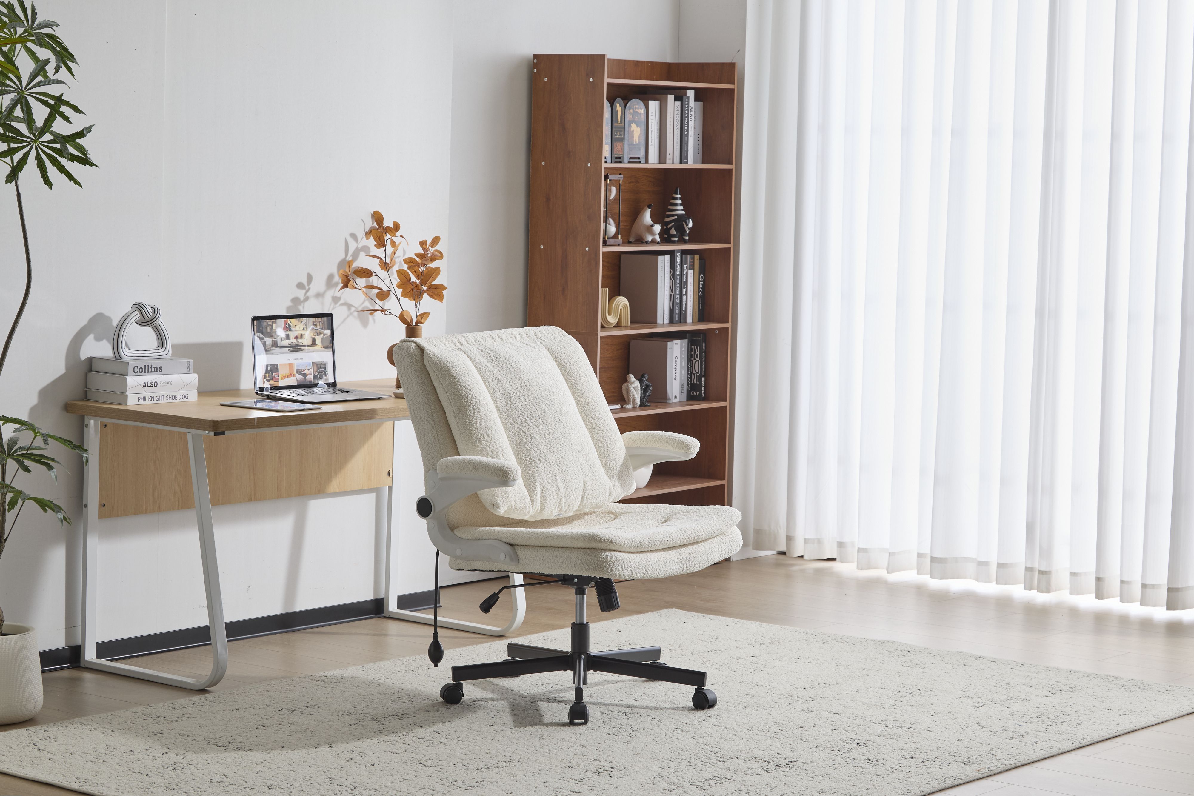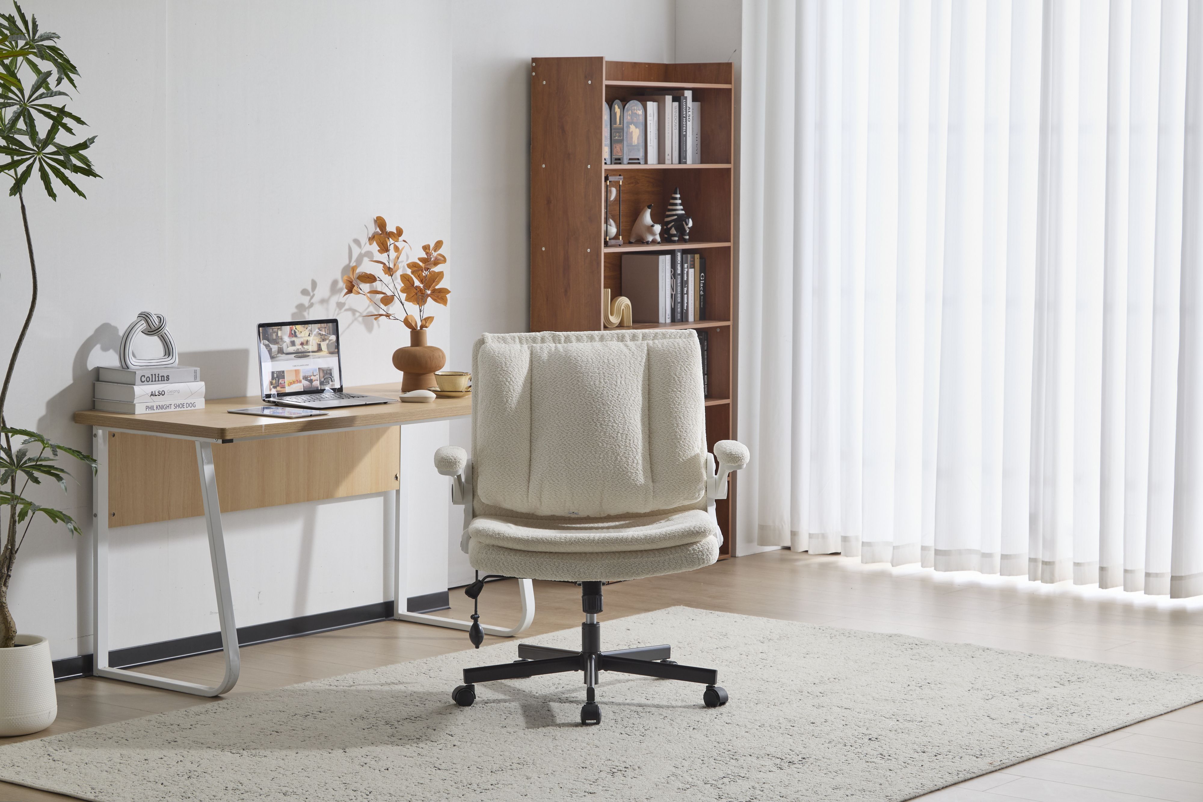 Home > Leather Criss Cross Chair with Flip-Up Armrests, Cross Legged Office Chair on Wheels