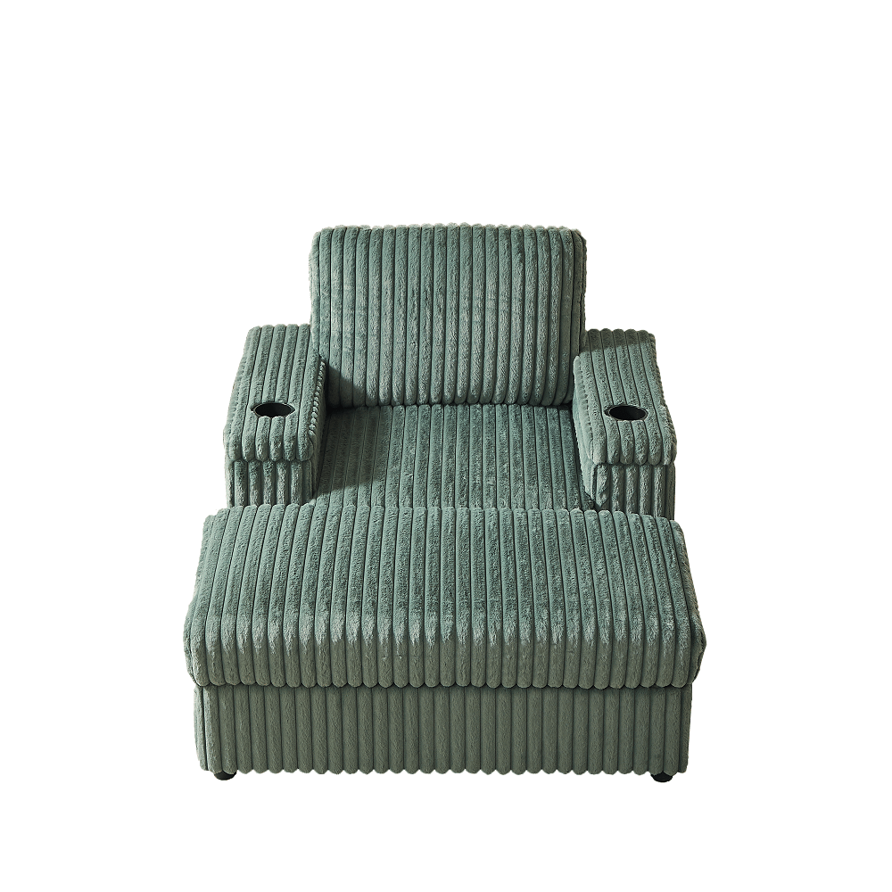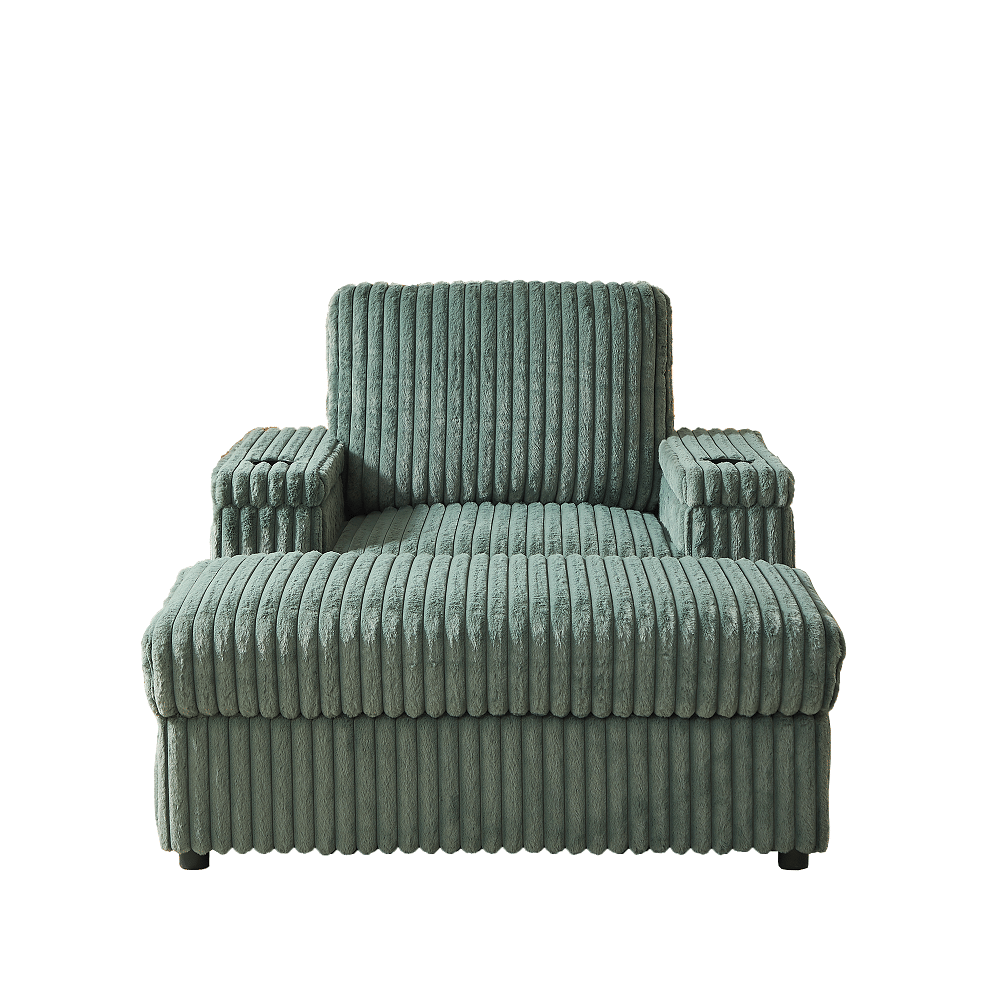 Storage Space: Both the armrests and footrest of this recliner feature built-in storage compartments, maximizing space efficiency. They can hold toys, books, or a blanket for naptime.Whether it's a family gathering, a nap or a happy time with friends and family, this corduroy sofa will be a highlight in your home. At the same time, the elegant seat focuses on detail and quality to ensure the durability and durability of the product. No matter be collocation Europe type, contracted or modern style household, can perfect fusion with it.Cup holder design: When you're relaxing in the recliner, you can place a cup of water right beside you—this recliner offers you greater convenience.Sofa Design: Plastic legs, one cushion, storage ottoman, armrest storage, armrest cup holdersCombination Options: This recliner not only adds a unique design touch to your sofa, but when paired with the matching three-seater recliner in your living room, it offers even more arrangement possibilities—making it an absolutely superior choice.
