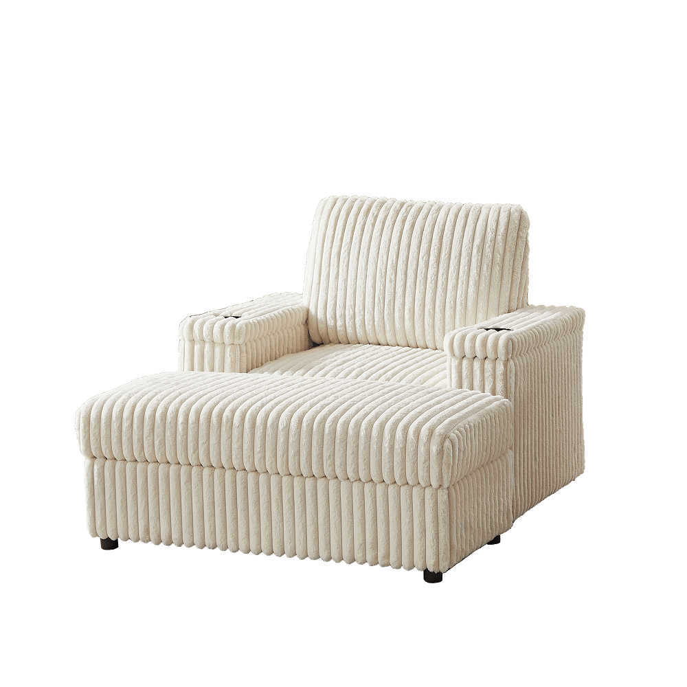 Storage Space: Both the armrests and footrest of this recliner feature built-in storage compartments, maximizing space efficiency. They can hold toys, books, or a blanket for naptime.Whether it's a family gathering, a nap or a happy time with friends and family, this corduroy sofa will be a highlight in your home. At the same time, the elegant seat focuses on detail and quality to ensure the durability and durability of the product. No matter be collocation Europe type, contracted or modern style household, can perfect fusion with it.Cup holder design: When you're relaxing in the recliner, you can place a cup of water right beside you—this recliner offers you greater convenience.Sofa Design: Plastic legs, one cushion, storage ottoman, armrest storage, armrest cup holdersCombination Options: This recliner not only adds a unique design touch to your sofa, but when paired with the matching three-seater recliner in your living room, it offers even more arrangement possibilities—making it an absolutely superior choice.