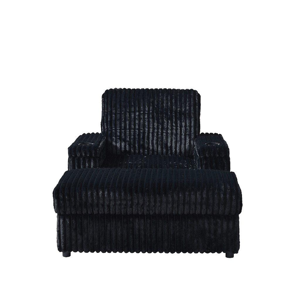 Storage Space: Both the armrests and footrest of this recliner feature built-in storage compartments, maximizing space efficiency. They can hold toys, books, or a blanket for naptime.Whether it's a family gathering, a nap or a happy time with friends and family, this corduroy sofa will be a highlight in your home. At the same time, the elegant seat focuses on detail and quality to ensure the durability and durability of the product. No matter be collocation Europe type, contracted or modern style household, can perfect fusion with it.Cup holder design: When you're relaxing in the recliner, you can place a cup of water right beside you—this recliner offers you greater convenience.Sofa Design: Plastic legs, one cushion, storage ottoman, armrest storage, armrest cup holdersCombination Options: This recliner not only adds a unique design touch to your sofa, but when paired with the matching three-seater recliner in your living room, it offers even more arrangement possibilities—making it an absolutely superior choice.