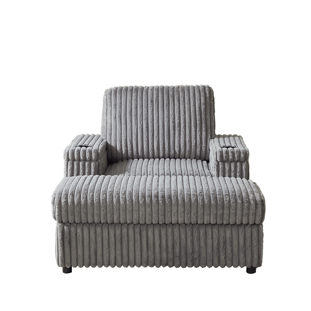 Storage Space: Both the armrests and footrest of this recliner feature built-in storage compartments, maximizing space efficiency. They can hold toys, books, or a blanket for naptime.Whether it's a family gathering, a nap or a happy time with friends and family, this corduroy sofa will be a highlight in your home. At the same time, the elegant seat focuses on detail and quality to ensure the durability and durability of the product. No matter be collocation Europe type, contracted or modern style household, can perfect fusion with it.Cup holder design: When you're relaxing in the recliner, you can place a cup of water right beside you—this recliner offers you greater convenience.Sofa Design: Plastic legs, one cushion, storage ottoman, armrest storage, armrest cup holdersCombination Options: This recliner not only adds a unique design touch to your sofa, but when paired with the matching three-seater recliner in your living room, it offers even more arrangement possibilities—making it an absolutely superior choice.