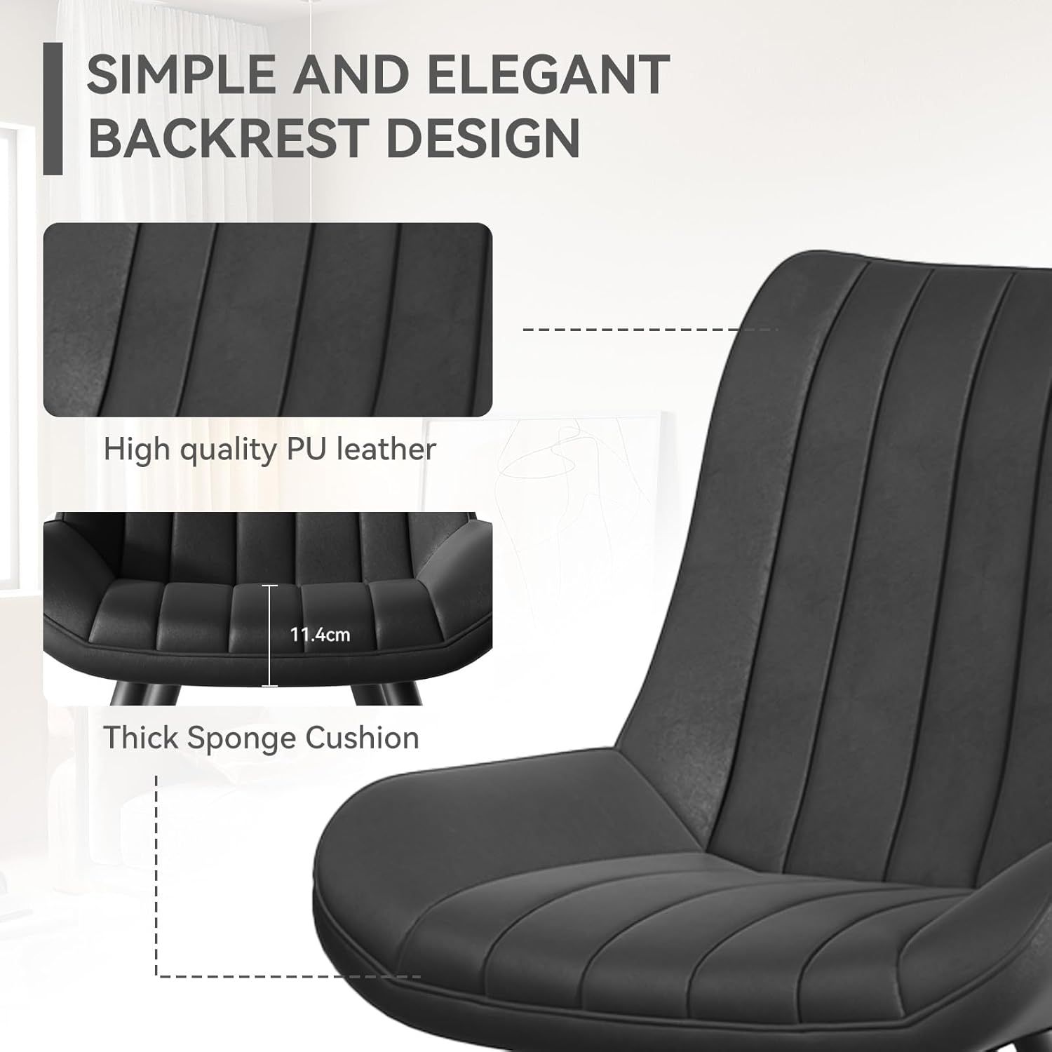Comfortable Details: A stylish alternative to traditional dining chairs, these are designed with padded faux leather cushions for added comfort. The bottom of the legs is equipped with anti-scratch and anti-noise pads, protecting your floors while maintaining a peaceful ambiance.