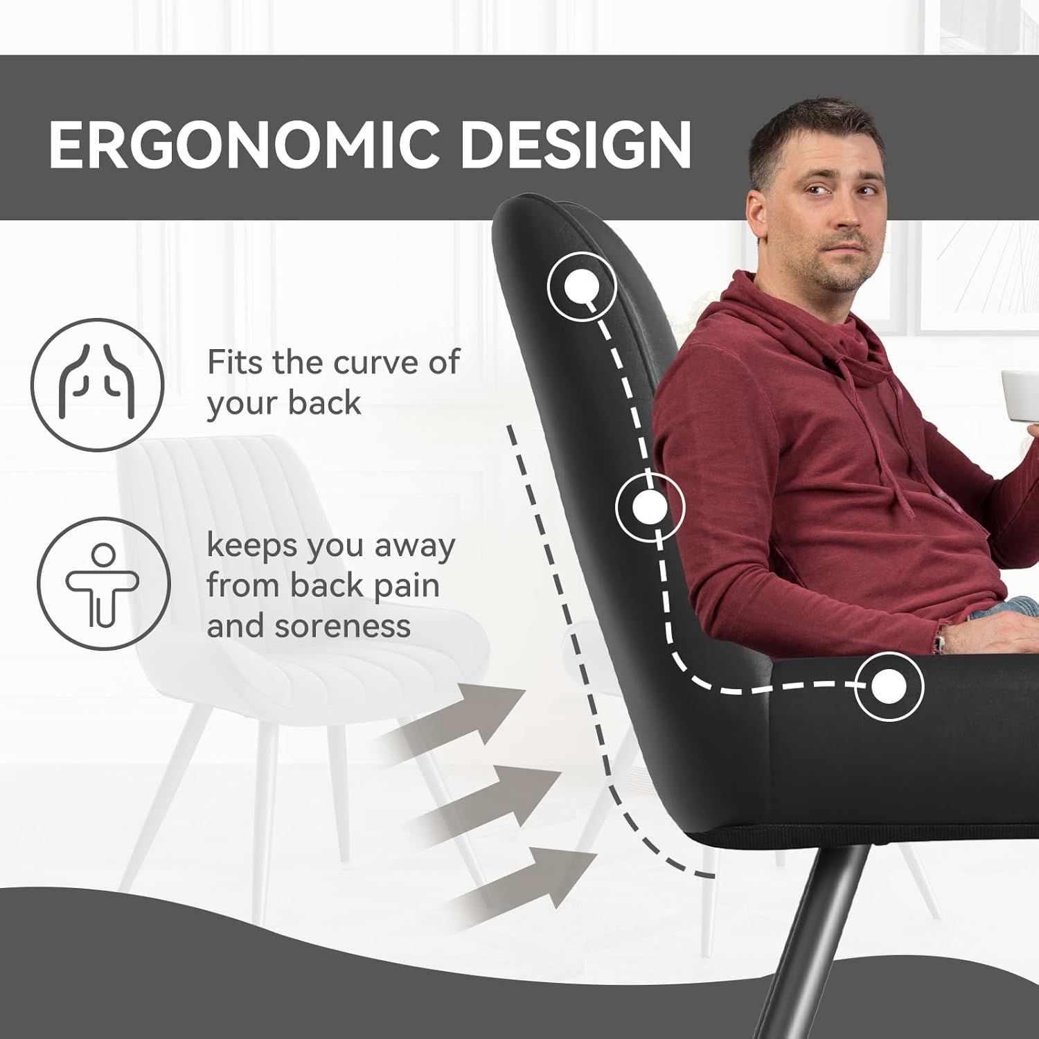 Sturdy and Durable: Featuring metal tube legs that provide sturdy support, these dining chairs offer excellent durability with a maximum weight capacity of 300 lbs. The thicker, padded seats and ergonomically curved backrests ensure long-lasting comfort.
