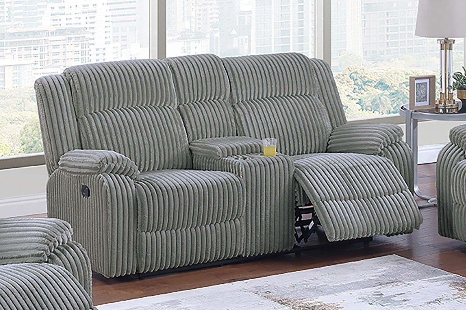 Motion Sofa And Loveseat w Console Smoke Fur Like Corduroy 2pc Reclining Sofa Set Living Room