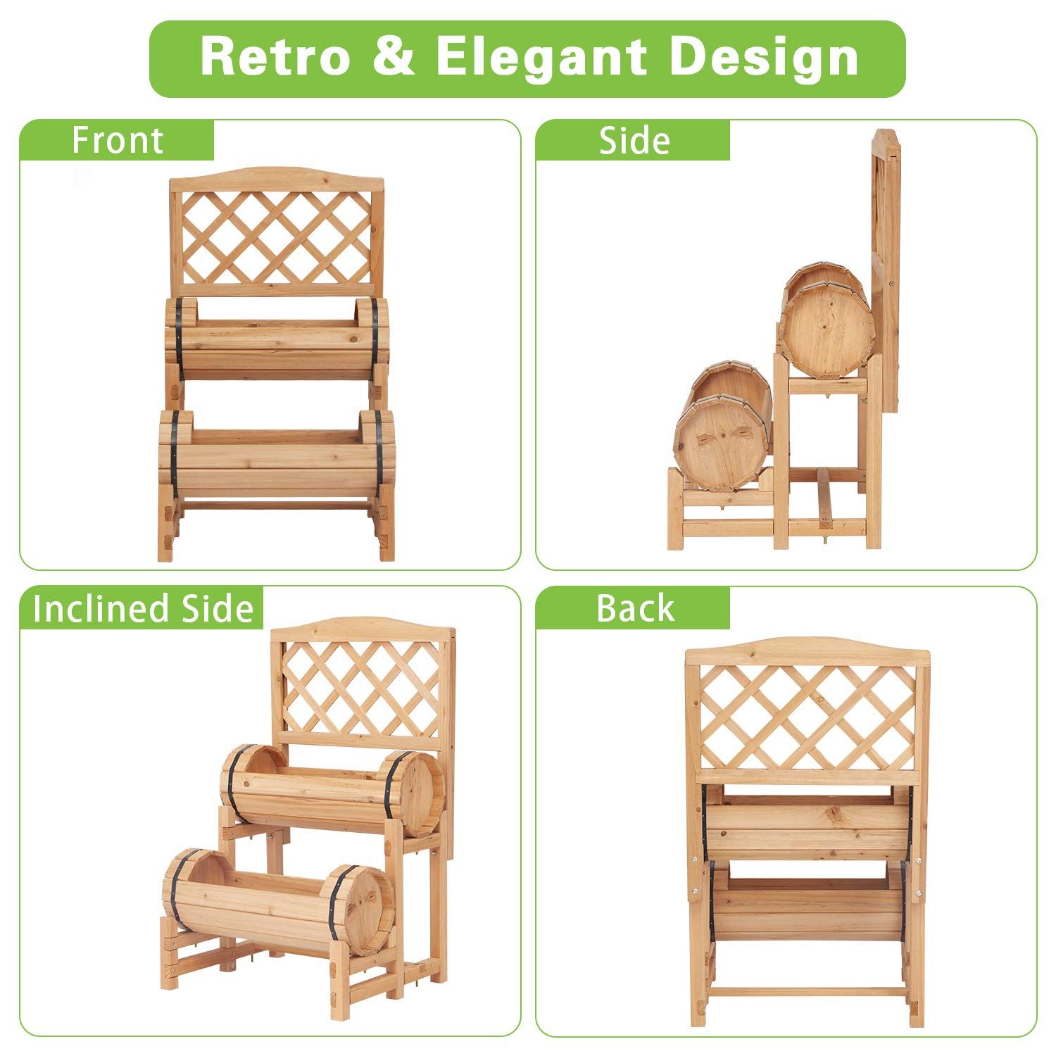 3.Sturdy and Durable: This outdoor planter is made of high-quality wood, which has strong stability and a stronger structure, which can be placed outdoors for a long time. The double-layer design is more space-saving.