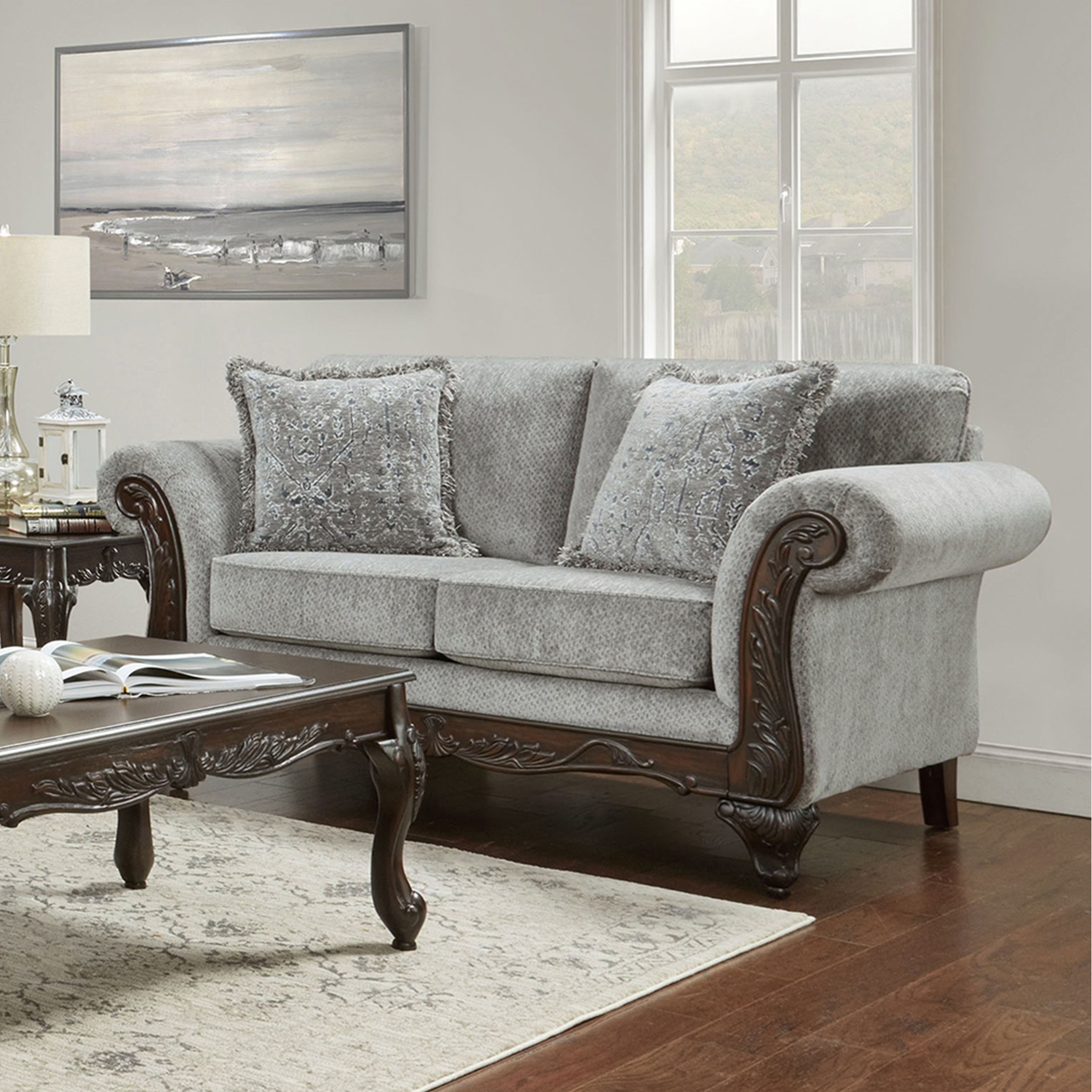 Hernen Carved Wood Frame Gray Sofa and Loveseat Set Hernen Carved Wood Frame Gray Sofa and Loveseat Set Hernen Carved Wood Frame Gray Sofa and Loveseat Set