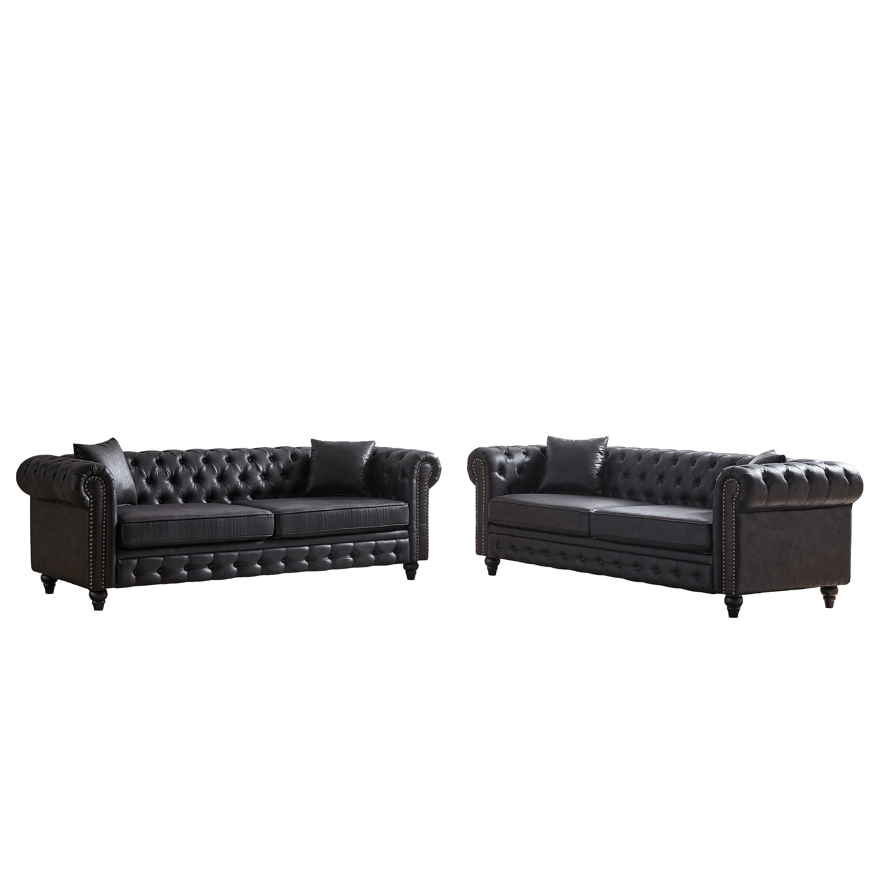 √ UNIQUE DESIGN: The unique combination of gold-colored metal legs and brass nails on the armrests makes it look high-end. The inlaid button design also brings a few noble qualities to the sofa. This sofa will be a bright and complementary addition to your home or office.