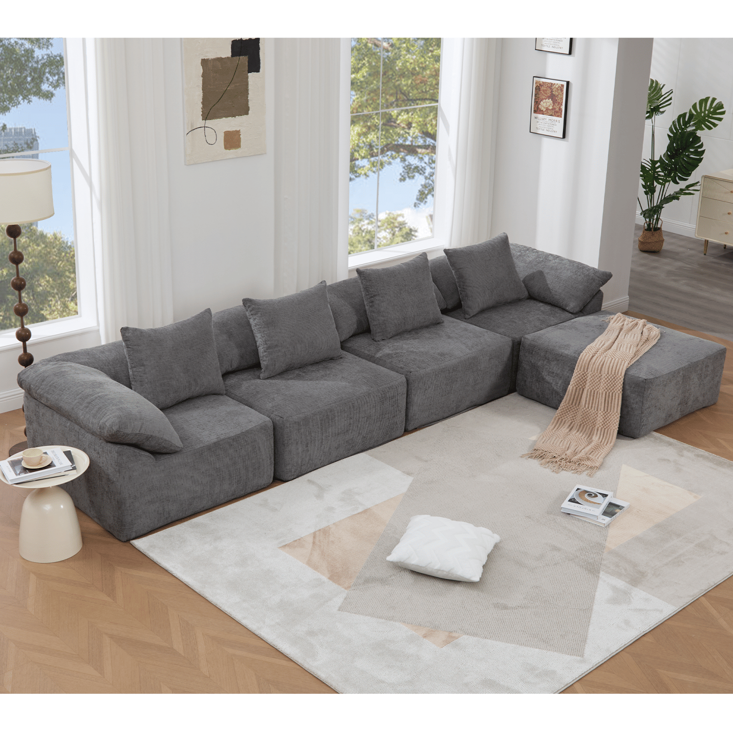 [Premium Soft Comfort] : The oversized cloud modular sofa, fluffy cushions and supportive backrests provides a cloud like seating experience. The backrest is connected with a pillow make You can relax and enjoy extended periods of sitting or lounging.