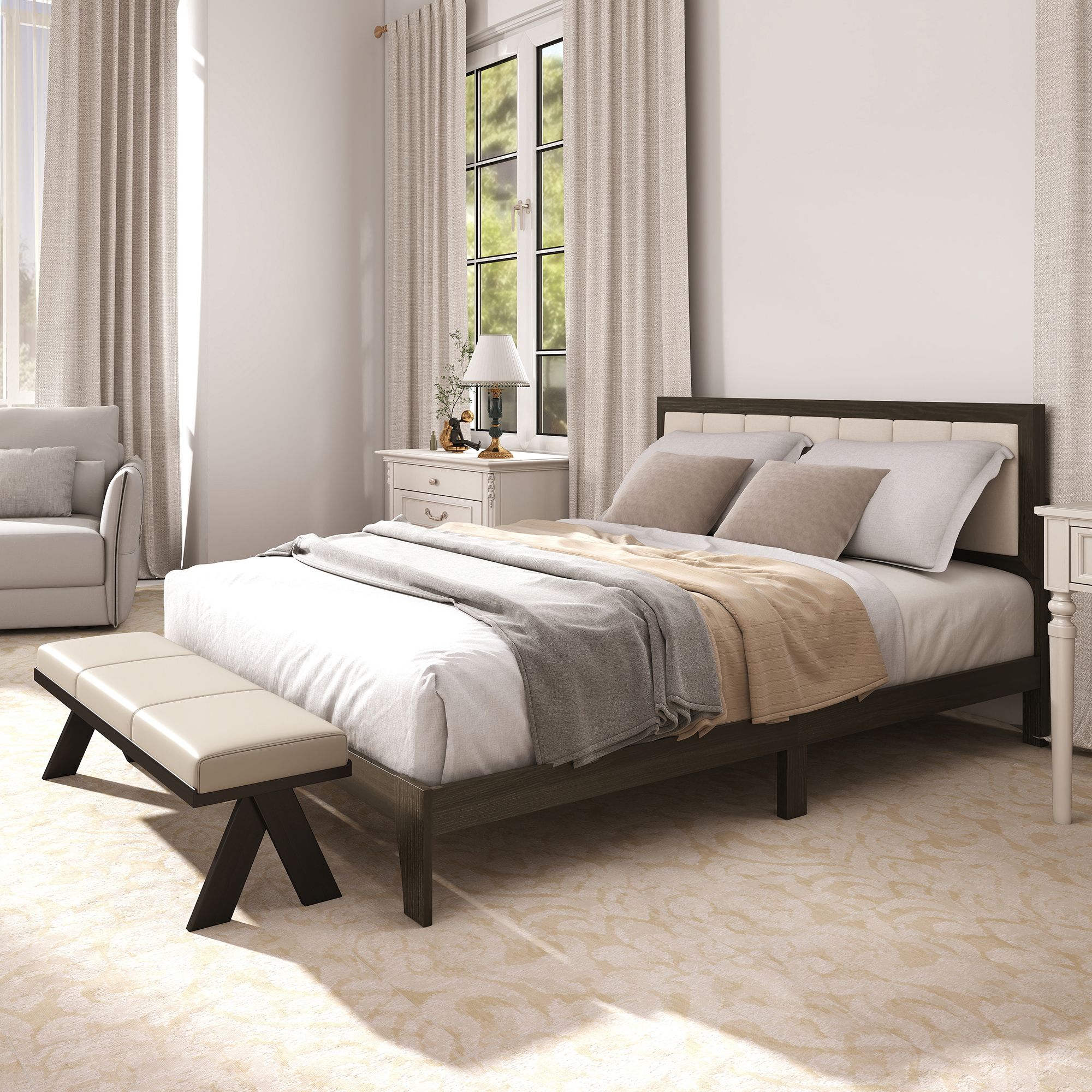 - - Upholstered headboard enhances comfort and adds elegance