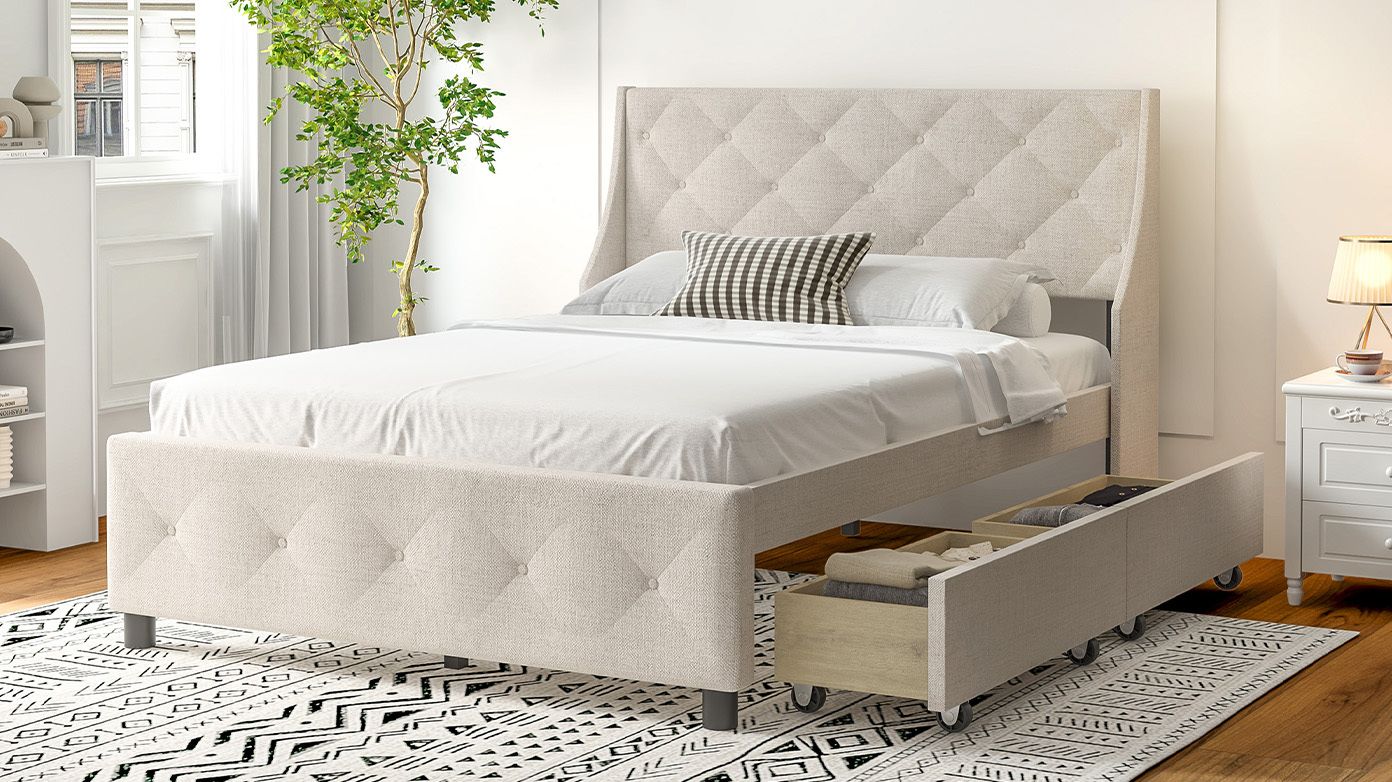 Easy Assembly & Smart Packing: Everything you need is efficiently packed in ONE box and shipped directly to your door; and the assembly instructions are clear and easy to follow, 2 person assembly of this queen bed frame with headboard takes less than an hour. If you need to move house, our queen size bed is very easy to disassemble and can be easily packed into a carton, which can be easily placed in the car trunk for transportation.