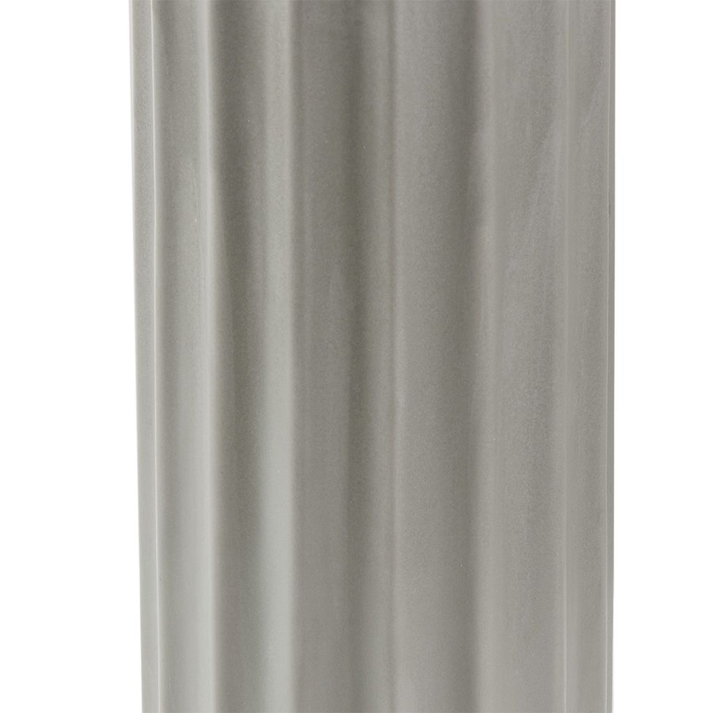The Martha Stewart Glendale Ribbed Ceramic Table Lamp blends classic and contemporary styles to update your home decor. This ceramic table lamp showcases a ribbed fluted modern design with a Grey finish, for a refined modern look. The white linen drum shade softly filters light to perfectly illuminate your space and is not adjustable. This table lamp also has a rotary on-off switch and brings a chic and subtle style to your living room or bedroom. One Type A light bulb is needed and included. Spot clean only.