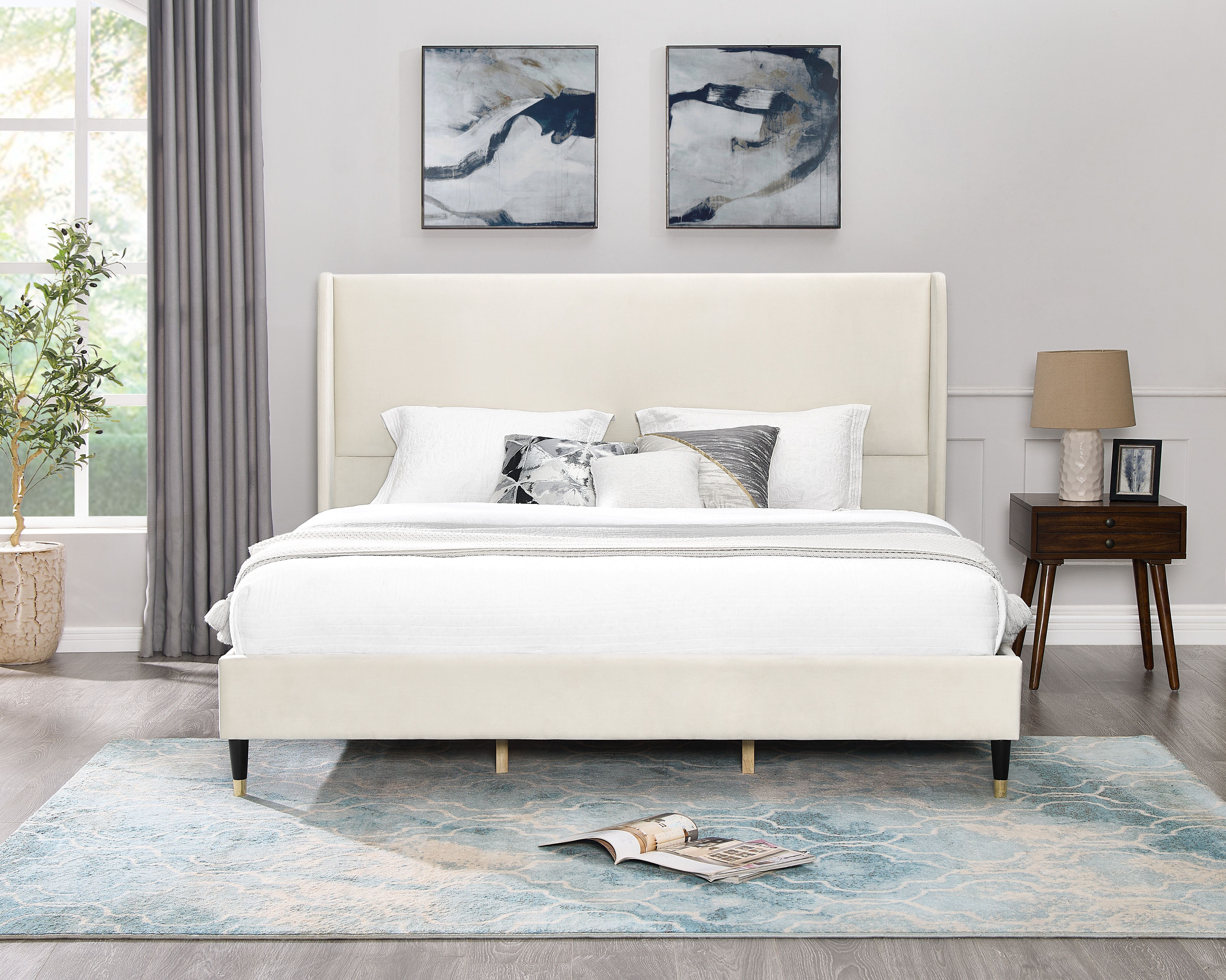 ➤ [TIMELESS DESIGN]: The headboard features a wingback design that adds a touch of timeless elegance to your bedroom, creating a sophisticated focal point that complements any decor style. Its cone-like feet feature a black-gold finish, bringing a modern and chic aesthetic to the bed and infusing your space with contemporary style. With a low-profile platform, this bed offers a sleek and minimalist look for your bedroom.