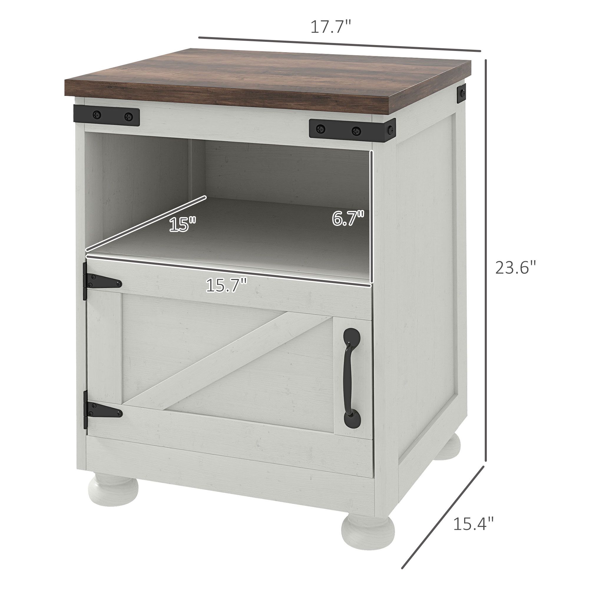 Is clutter making you uncomfortable? Want a fresh look for your home furniture? Add simple storage and elegance with HOMCOM's small end table. Adorned with four decorative metal tabs and a rustic top, this end table blends farmhouse style with modern aesthetics. The top offers ample room for your favorite lamp or decor. An open shelf and a cupboard help keep essentials tidy. Add a touch of warmth to any room with this stylish piece. Make your house a home with HOMCOM.