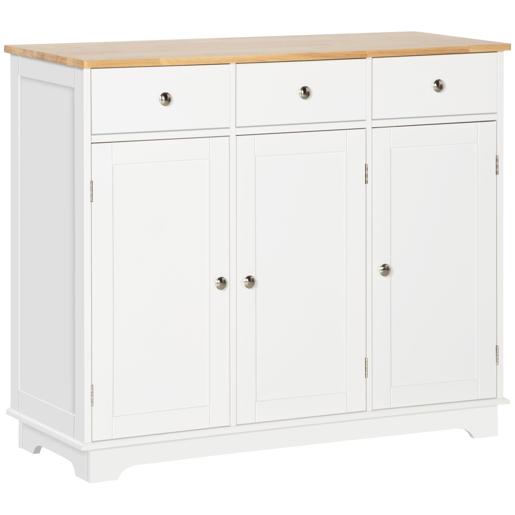 Sideboard Buffet Cabinet, 3-Doors Kitchen Cabinet, Coffee Bar Storage with 3 Drawers, Adjustable Shelf for Living Room and Hallway, White