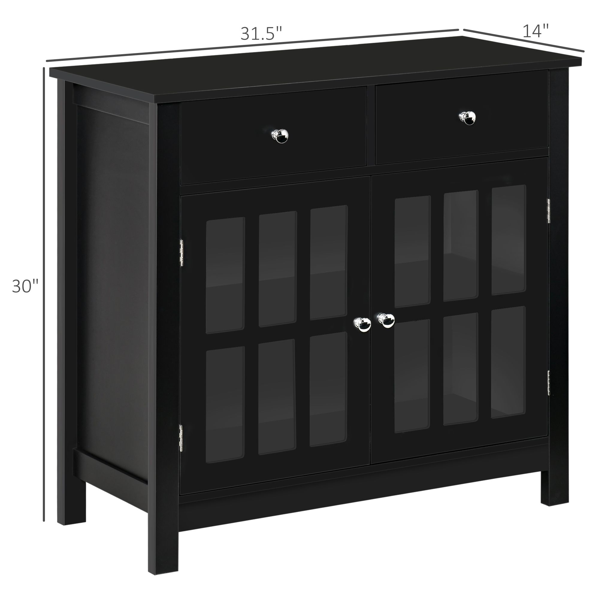 Creating a stylish storage option has never been so easy. This modern buffet cabinet from HOMCOM fits nicely with any decor, and you can use it in the kitchen, dining room, or living room to create additional storage. This kitchen cabinet storage unit comes with two drawers and an enclosed cabinet with a fixed shelf to store daily accessories, utensils, dry goods, plates, and dishes. Get a beautiful new piece of furniture with storage functionality with this storage sideboard from HOMCOM.