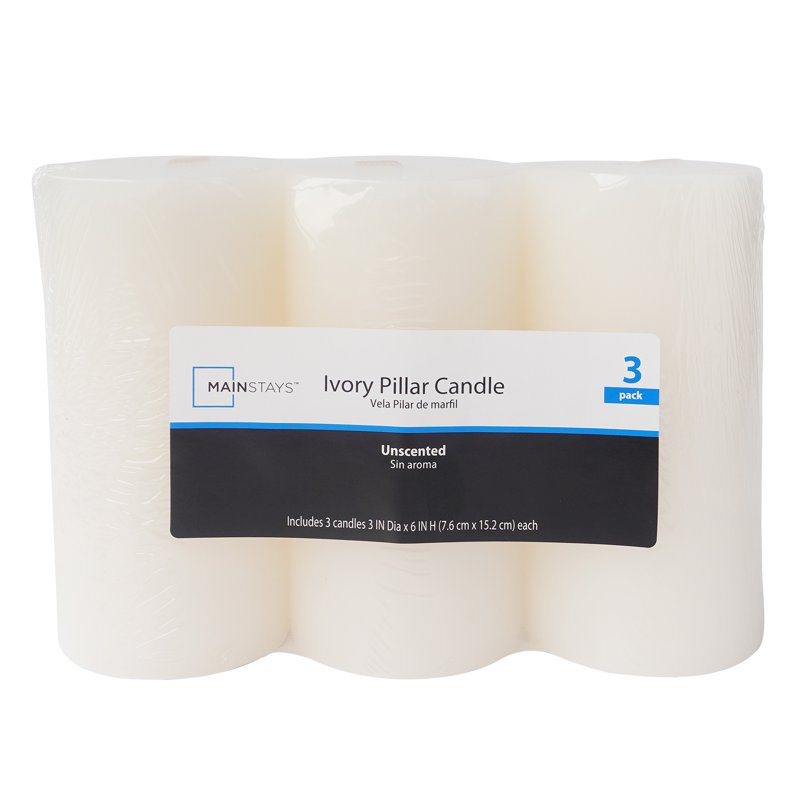 Single Wick 3" x 6" Pillar Candle, Unscented, Ivory, 3 Pack Single Wick 3" x 6" Pillar Candle, Unscented, Ivory, 3 Pack Single Wick 3" x 6" Pillar Candle, Unscented, Ivory, 3 Pack