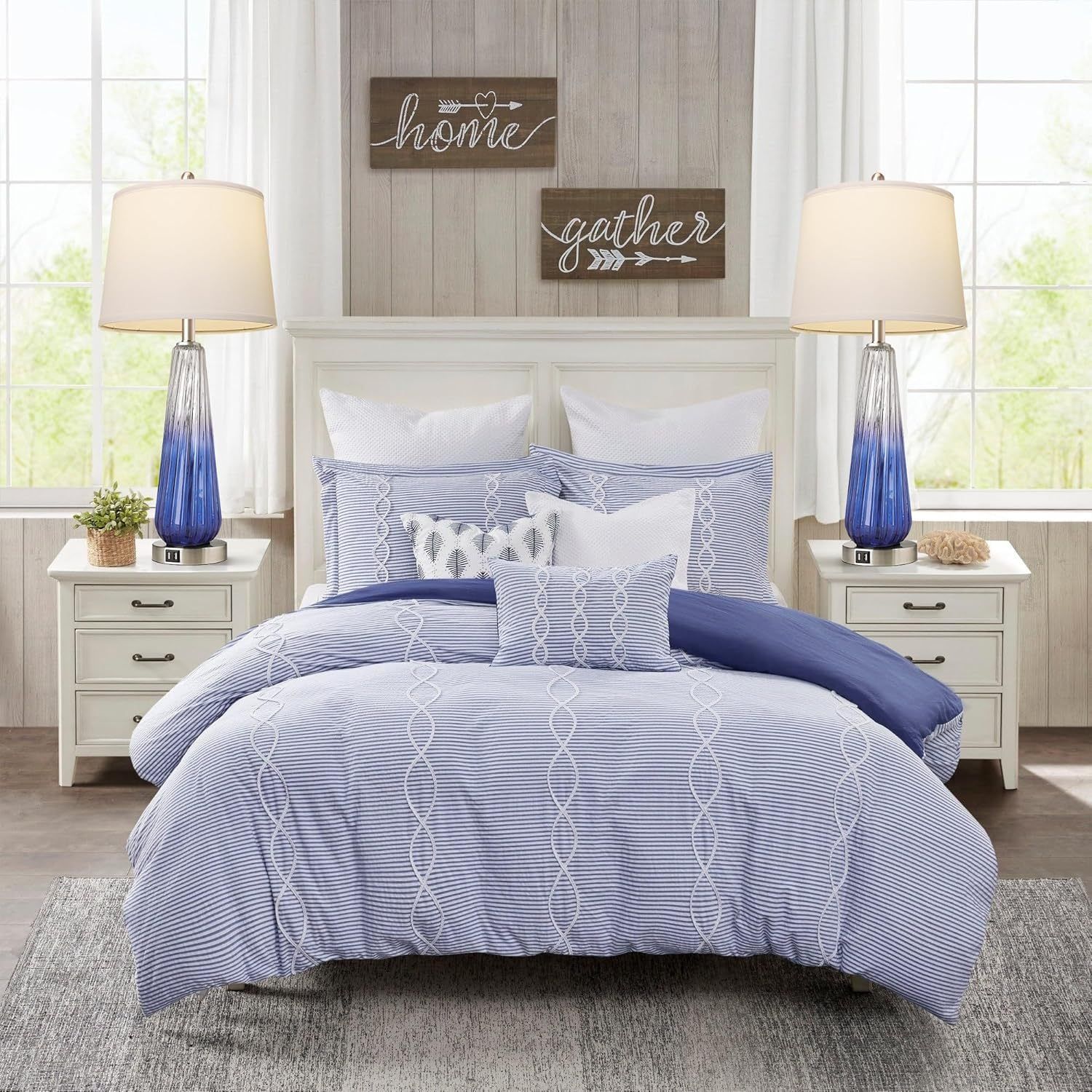 Aesthetic decoration: the navy blue lamp set of 2 consists of high-quality glass material and white fabric drum shade that are perfectly combined with the warm tone of the lamp's illuminated, creating a comfortable environment to protect your eyes. Whether resting on your nightstands, set in the living room or tucked into your favorite reading nook, this set of table lamps is a chic addition to any aesthetic.