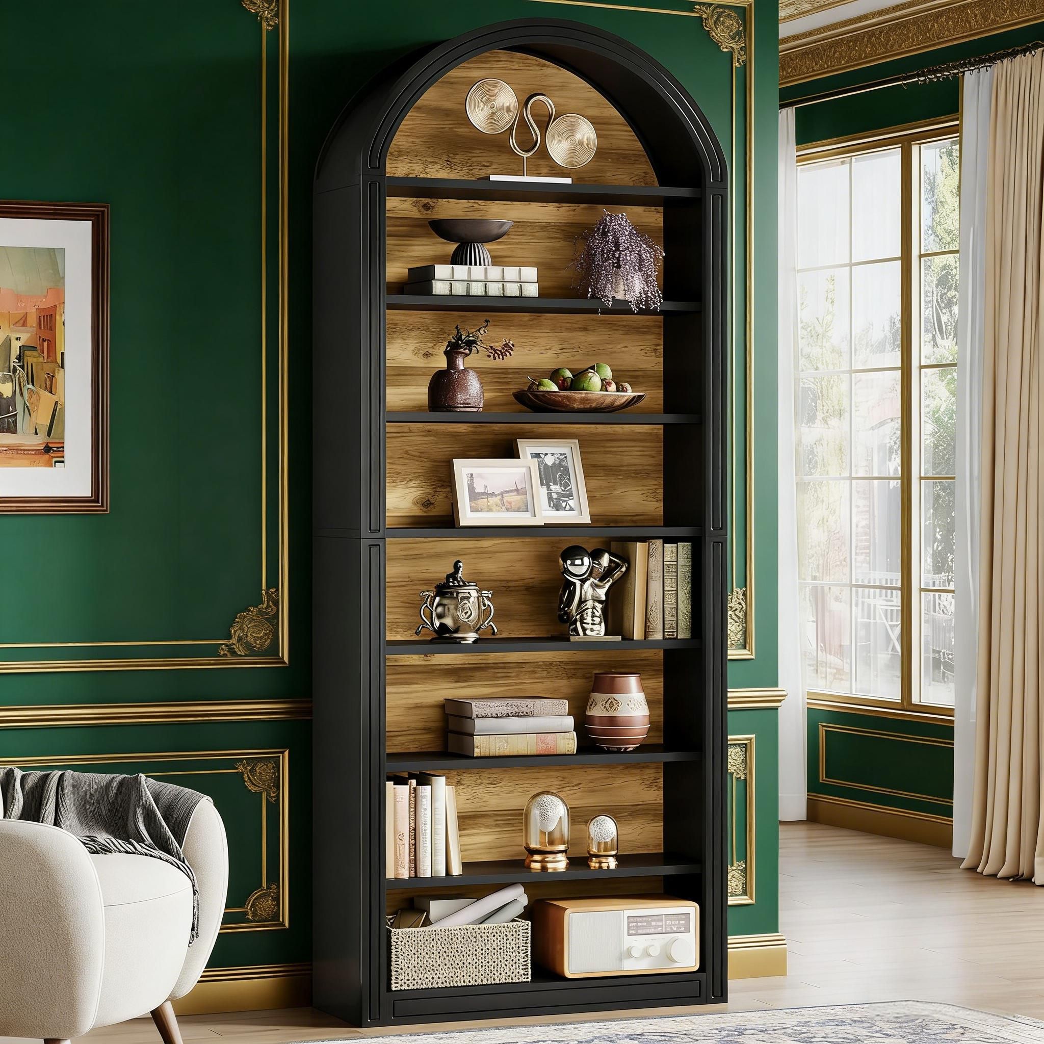 Home > Tall Bookshelf, Wooden Arched Bookcase Display Shelving Unit