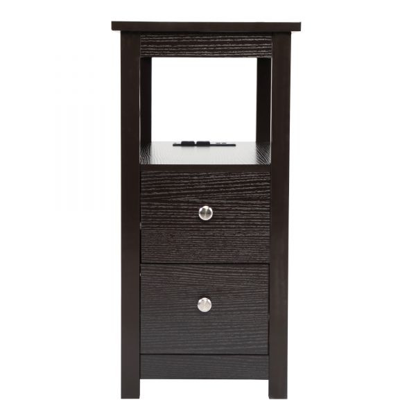 [2-Drawer and Shelf]: The nightstand offers 2 drawers for concealed storage and an open shelf and tabletop for storage for books or decorating accessories.