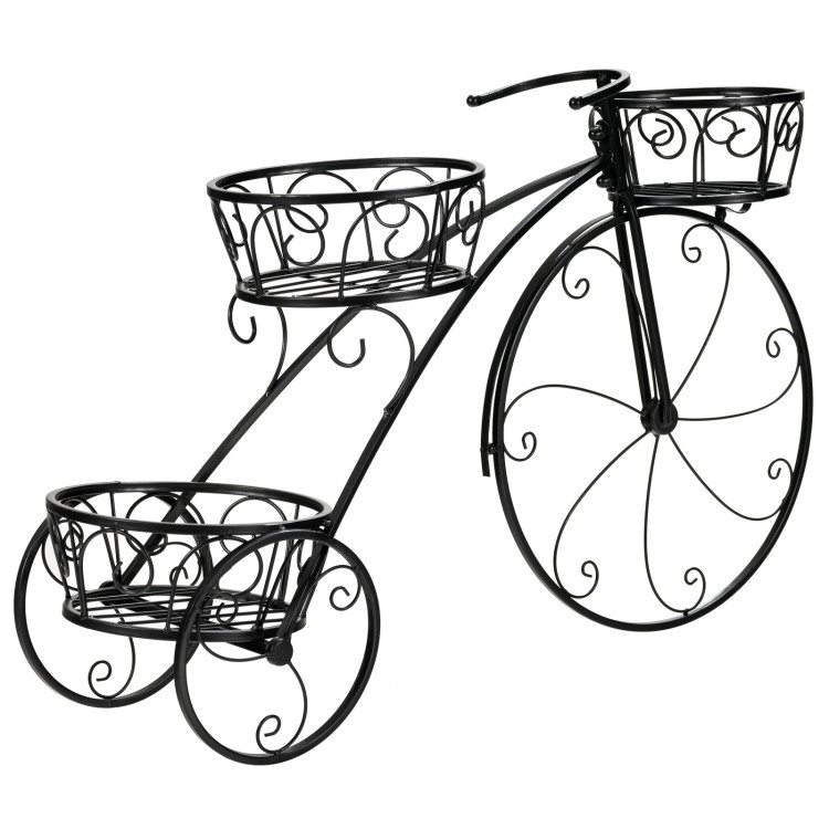 1.3-Tier Tricycle Plant Stand: Wrought iron flower plant stand features 3 round shelves, which beautifully displays your ferns, succulents, tulips, narcissus and other lovely potted plants. The basket-style design prevents plants from falling accidentally and enhances the look of your garden or outdoor.