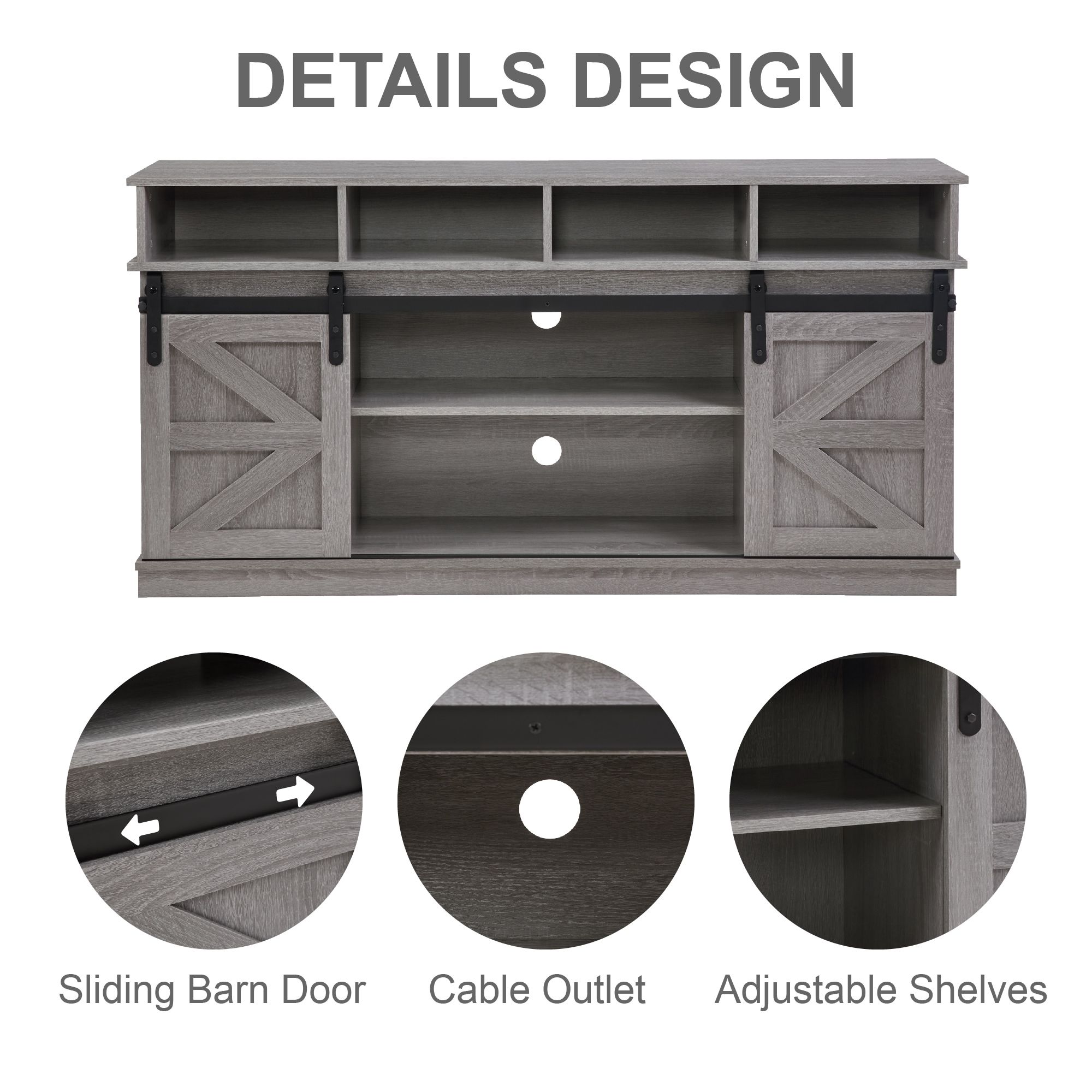 [Classic Farmhouse Style, A Warm Decorative Choice]:This storage cabinet is not only practical for placing TVs and items, but also has excellent decorative functions. Three charming colors are provided for you to choose from, which can easily adapt to the style of your living room and create a warm and cozy atmosphere for you.