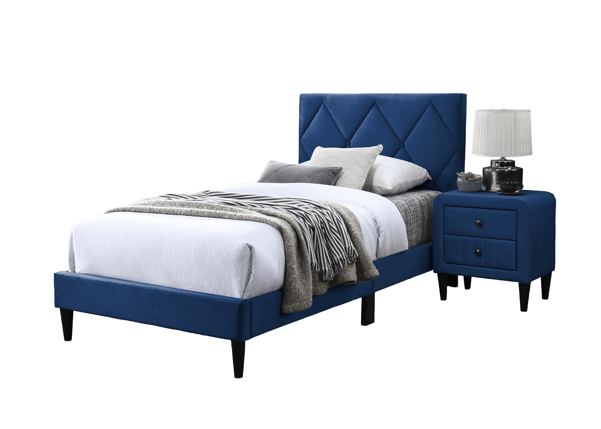 Home > Twin Size Bed w Adjustable Headboard 1pc Bedframe, Navy Blue Velvet Upholstered Youth Bedroom Furniture