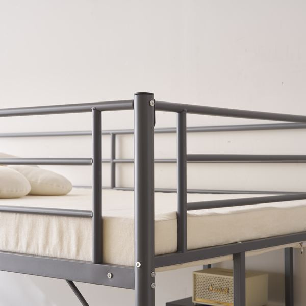Twin Size Metal Loft Bed with Desk and Storage Shelves, 2 Built-in Ladders & Full-Length Guardrails, Loft Bed Frame for Teens Juniors Adults Twin Size Metal Loft Bed with Desk and Storage Shelves, 2 Built-in Ladders & Full-Length Guardrails, Loft Bed Frame for Teens Juniors Adults Twin Size Metal Loft Bed with Desk and Storage Shelves, 2 Built-in Ladders & Full-Length Guardrails, Loft Bed Frame for Teens Juniors Adults