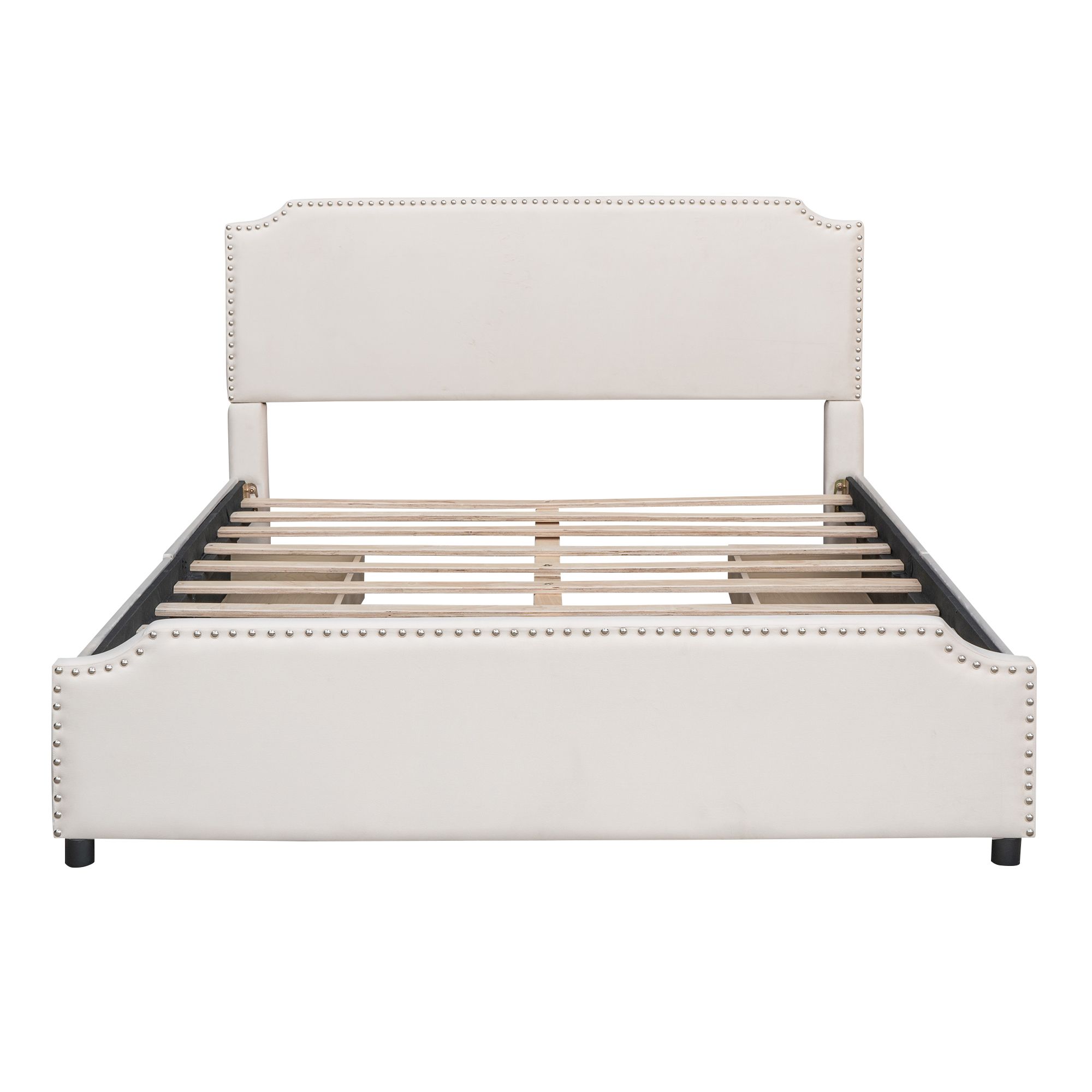 [Maximized space]The platform bed with four big drawers can easily be pulled in and out for maximum storage space, perfect for organizing anything from clothes and bed linens to toys and games. Such a versatile piece, bringing functionality, versatility, and style to your home, perfect for those who have lots of visitors.