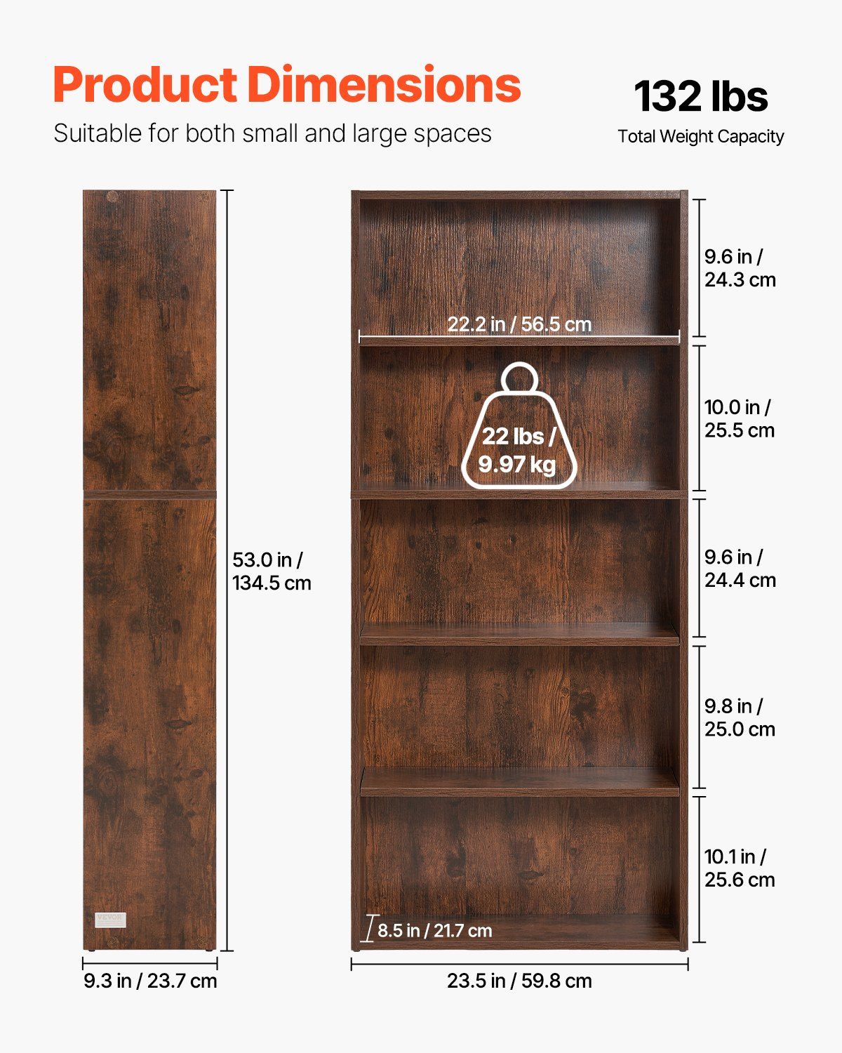 1.Versatile 5-Tier Bookcase: Maximize your space with this 5-tier bookcase (23.5 x 9.3 x 53.0 in / 598 x 237 x 1345 mm). Perfect for any corner in your living room, study, or bedroom, this open bookcase design lets you easily display books, photos, and decorative items.