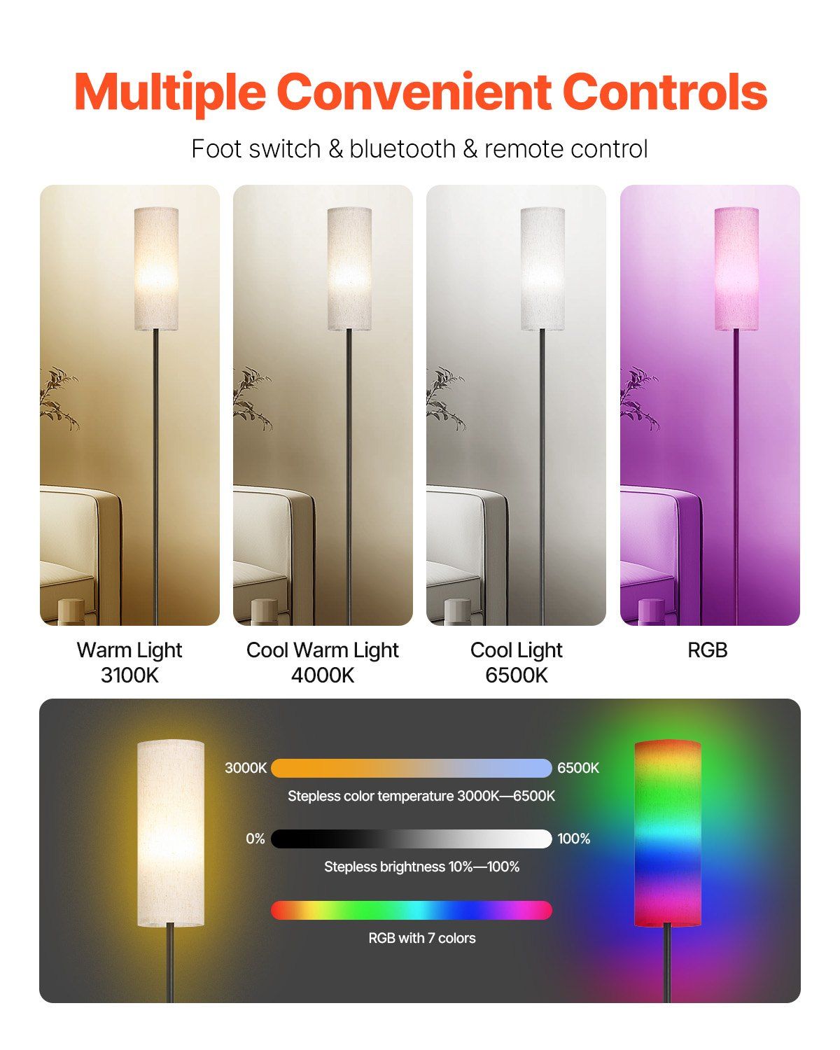 VEVOR Dimmable Floor Lamp, Stepless Adjustable Colors, Modern Standing Lamp with Remote Control, Foot Switch & APP Control VEVOR Dimmable Floor Lamp, Stepless Adjustable Colors, Modern Standing Lamp with Remote Control, Foot Switch & APP Control VEVOR Dimmable Floor Lamp, Stepless Adjustable Colors, Modern Standing Lamp with Remote Control, Foot Switch & APP Control