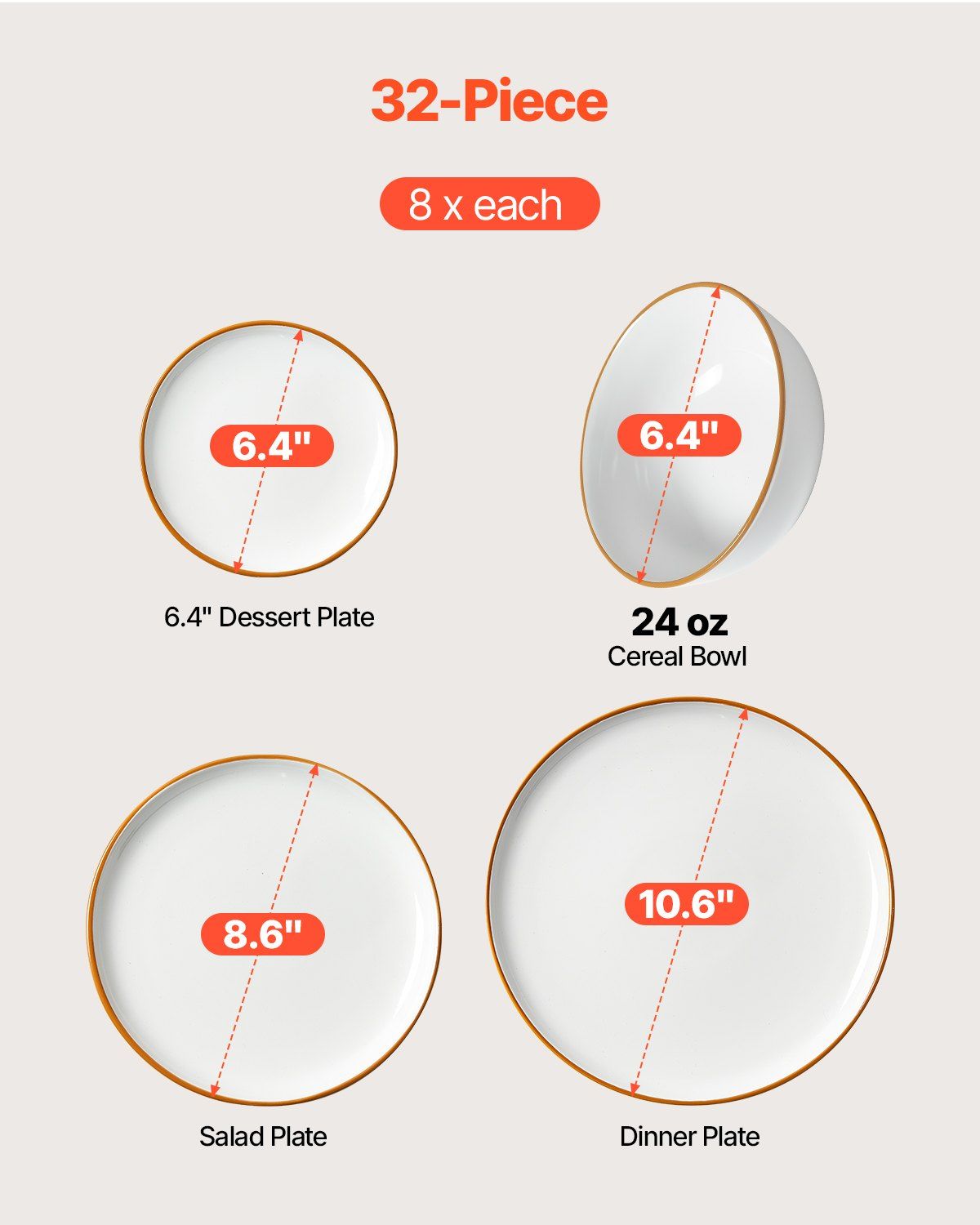 VEVOR Dinnerware Set, Service for 8 (32 PCS), Round Plates and Bowls Sets, Scratch Resistant Ceramic Dinner Ware VEVOR Dinnerware Set, Service for 8 (32 PCS), Round Plates and Bowls Sets, Scratch Resistant Ceramic Dinner Ware VEVOR Dinnerware Set, Service for 8 (32 PCS), Round Plates and Bowls Sets, Scratch Resistant Ceramic Dinner Ware
