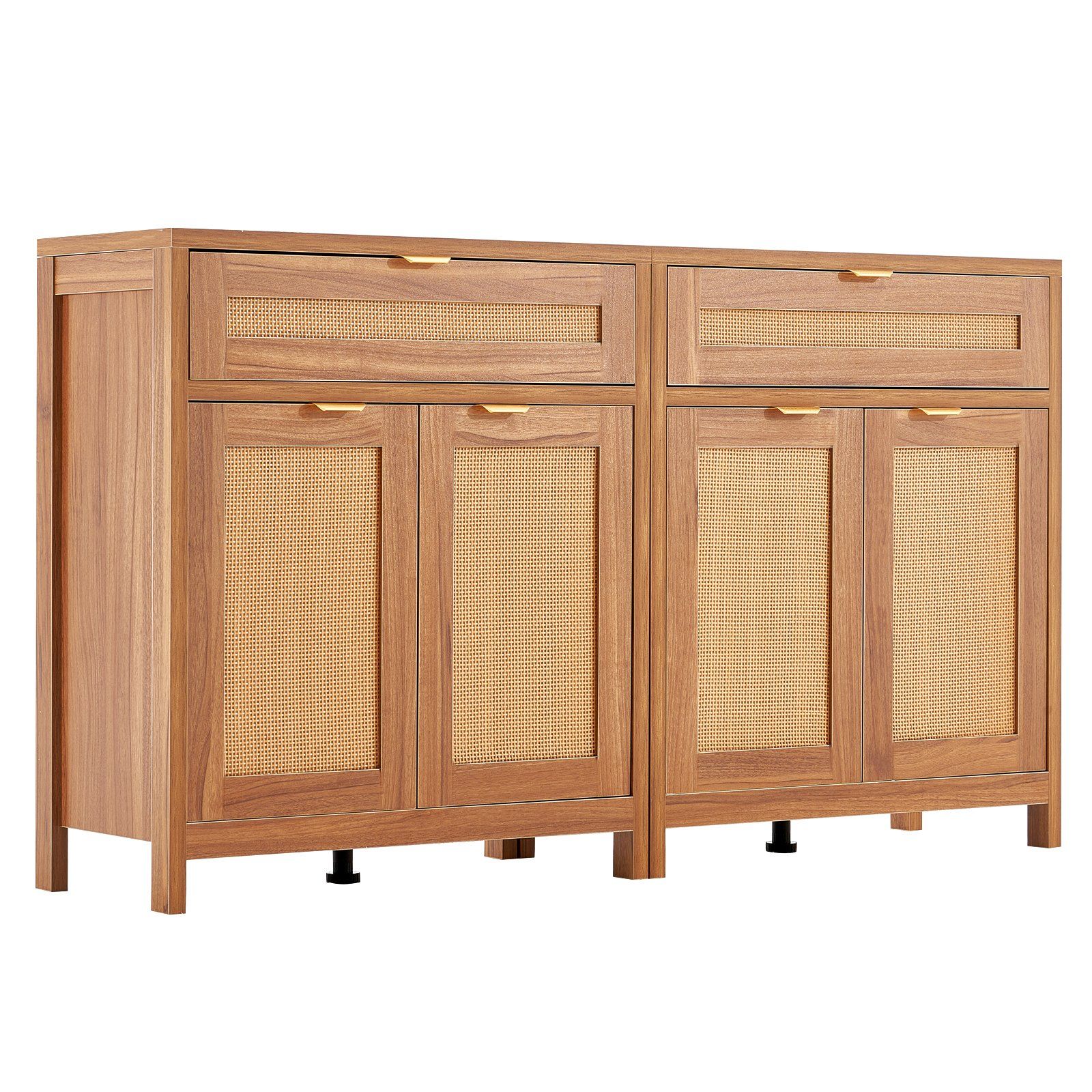 This rattan buffet cabinet offers the perfect storage solution, suitable for use as a kitchen sideboard, bar cabinet, storage unit, or entryway shoe cabinet. Its versatile design makes it adaptable to various settings, serving as both a storage unit and a decorative piece.