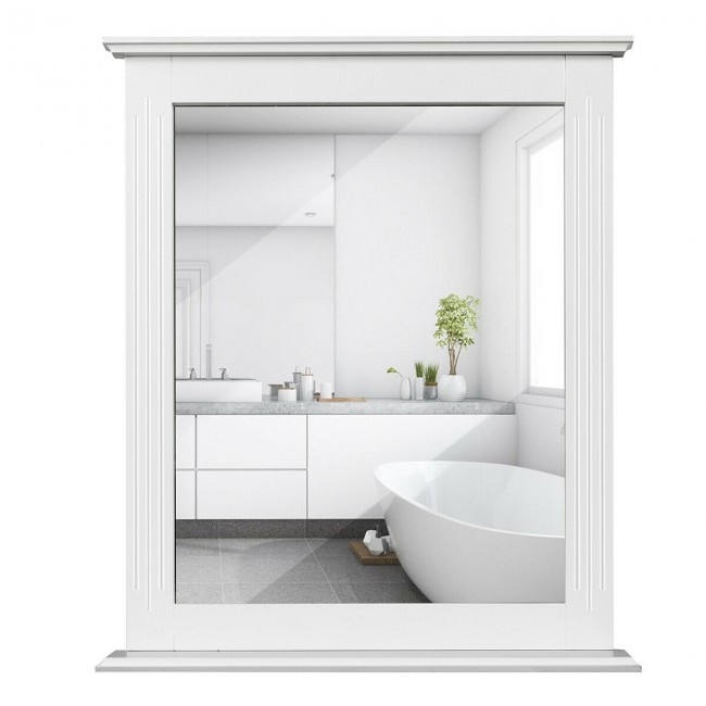 High quality MDF material guarantees high quality and long service lifeHigh-definition mirror can clearly show your beautiful faceWith a shelf for extra storage space and make your home clean and tidyElegant in appearance and can be combined with any decoration of your home to add beautyConcise and elegant look with unique groove design on both sidesSuitable for versatile occations such as in hallway, living room, bathroom and hotelEasy to clean because of the smooth and well-finished surfaceEasy to install with the detailed instruction and complete accessories