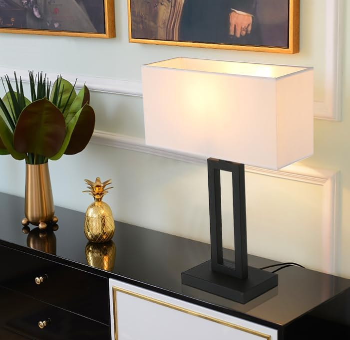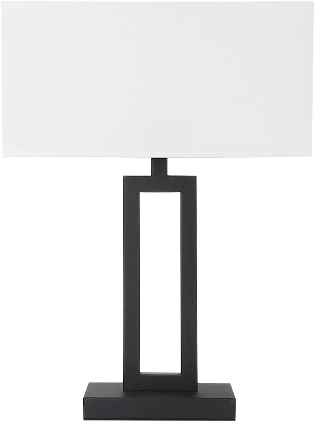 Brighten your space with this White Indoor Table Lamp, featuring a clean rectangular fabric shade and modern black base. Designed with a dimmable on/off switch and extra-long 65.8 inch cord,